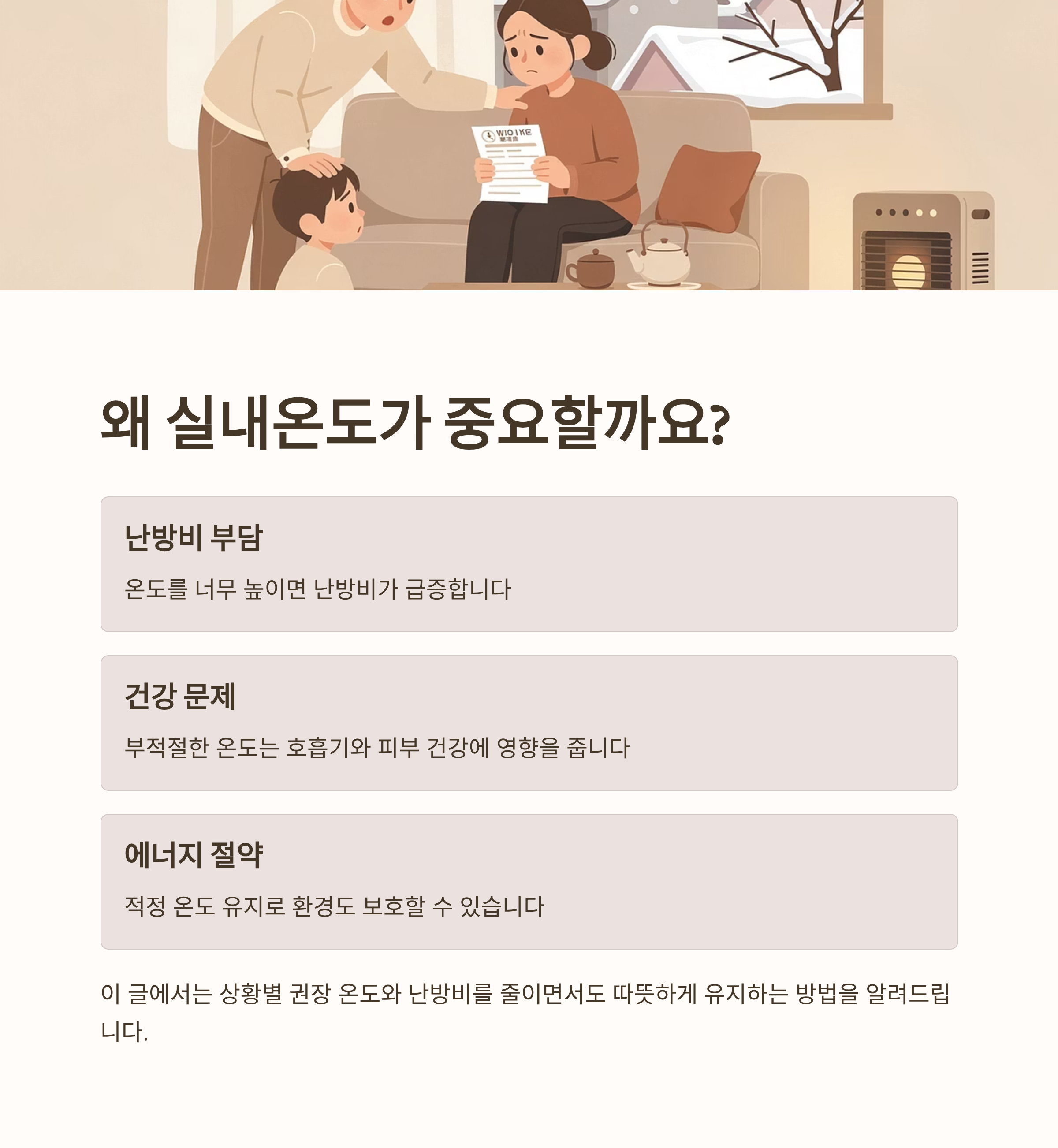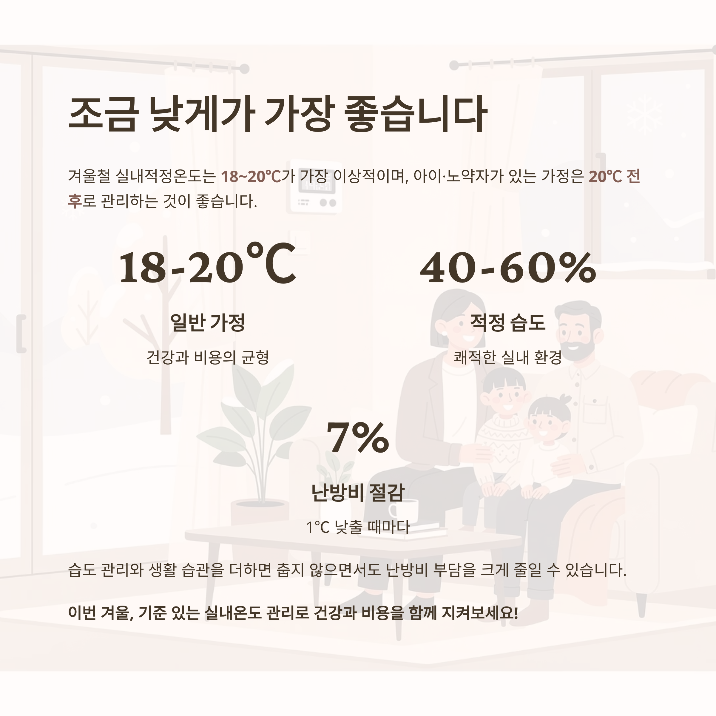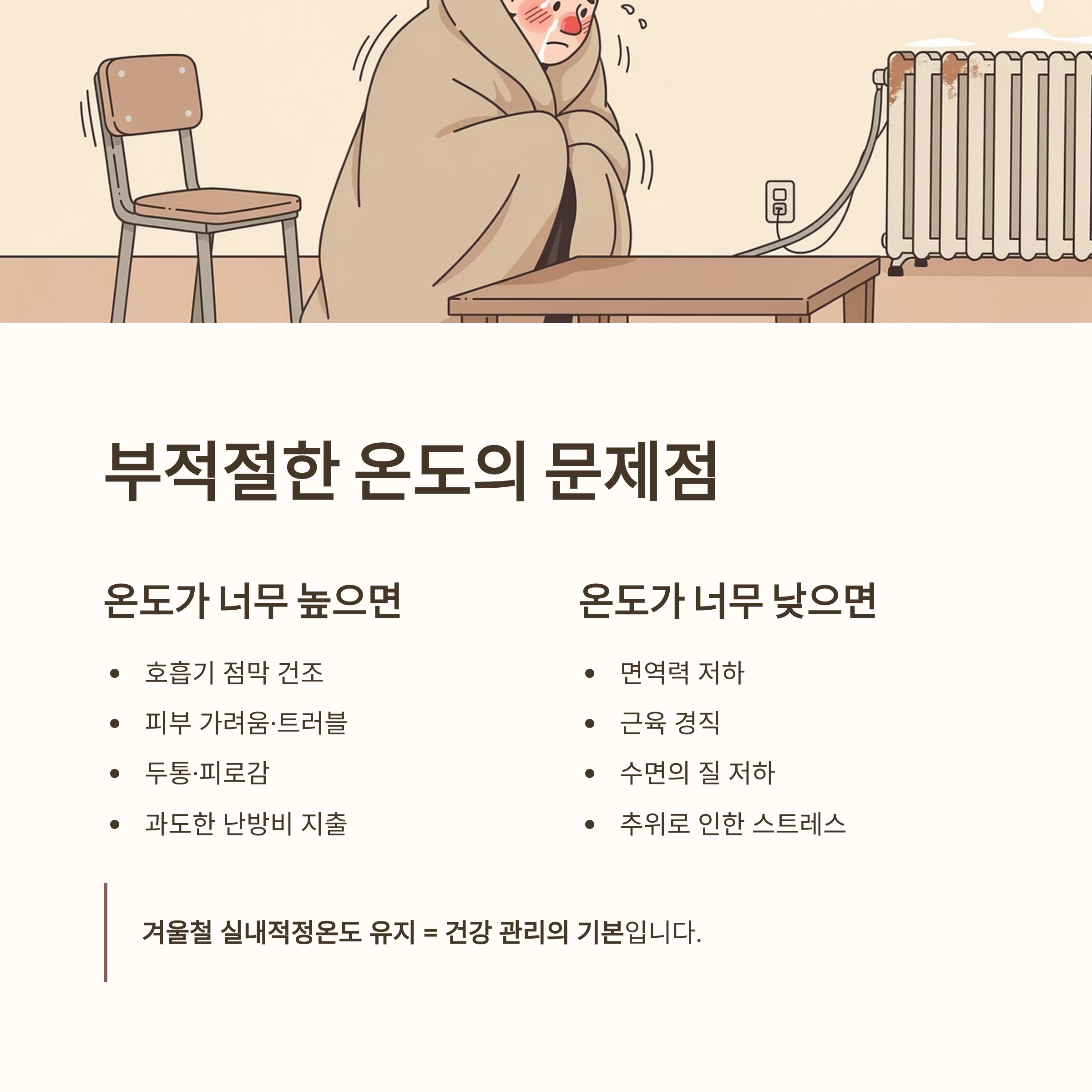 난방을 너무 낮추면 춥고, 너무 높이면 난방비 부담과 건강 문제가 동시에 생길 수 있기 때문입니다.