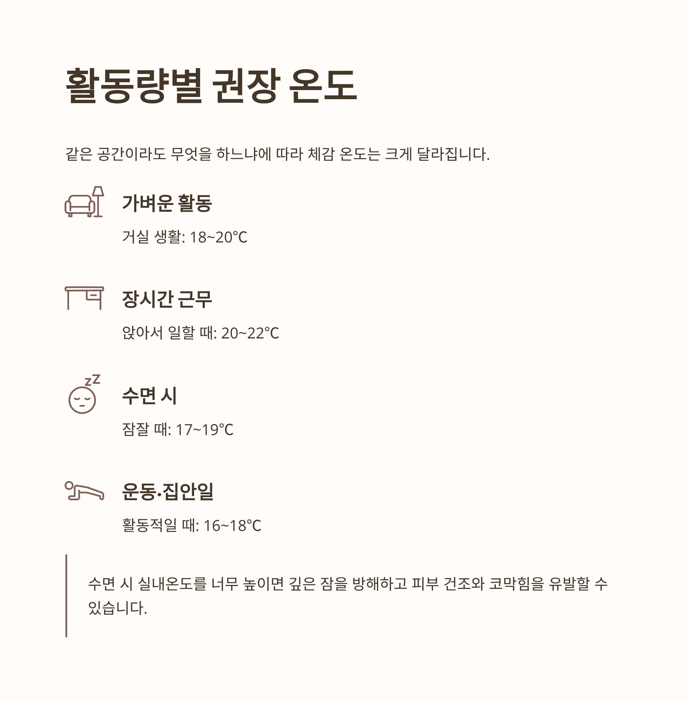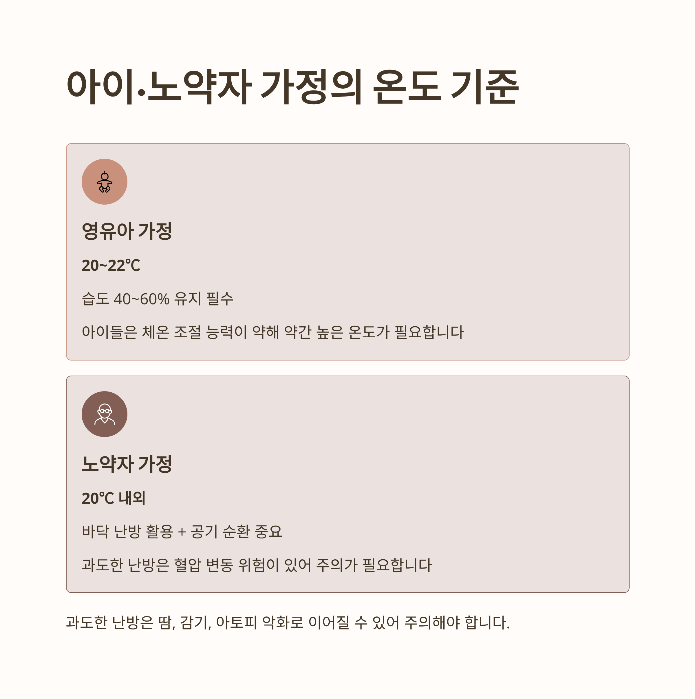 ✔ 상황별(가정·아이·노약자·사무실) 권장 온도