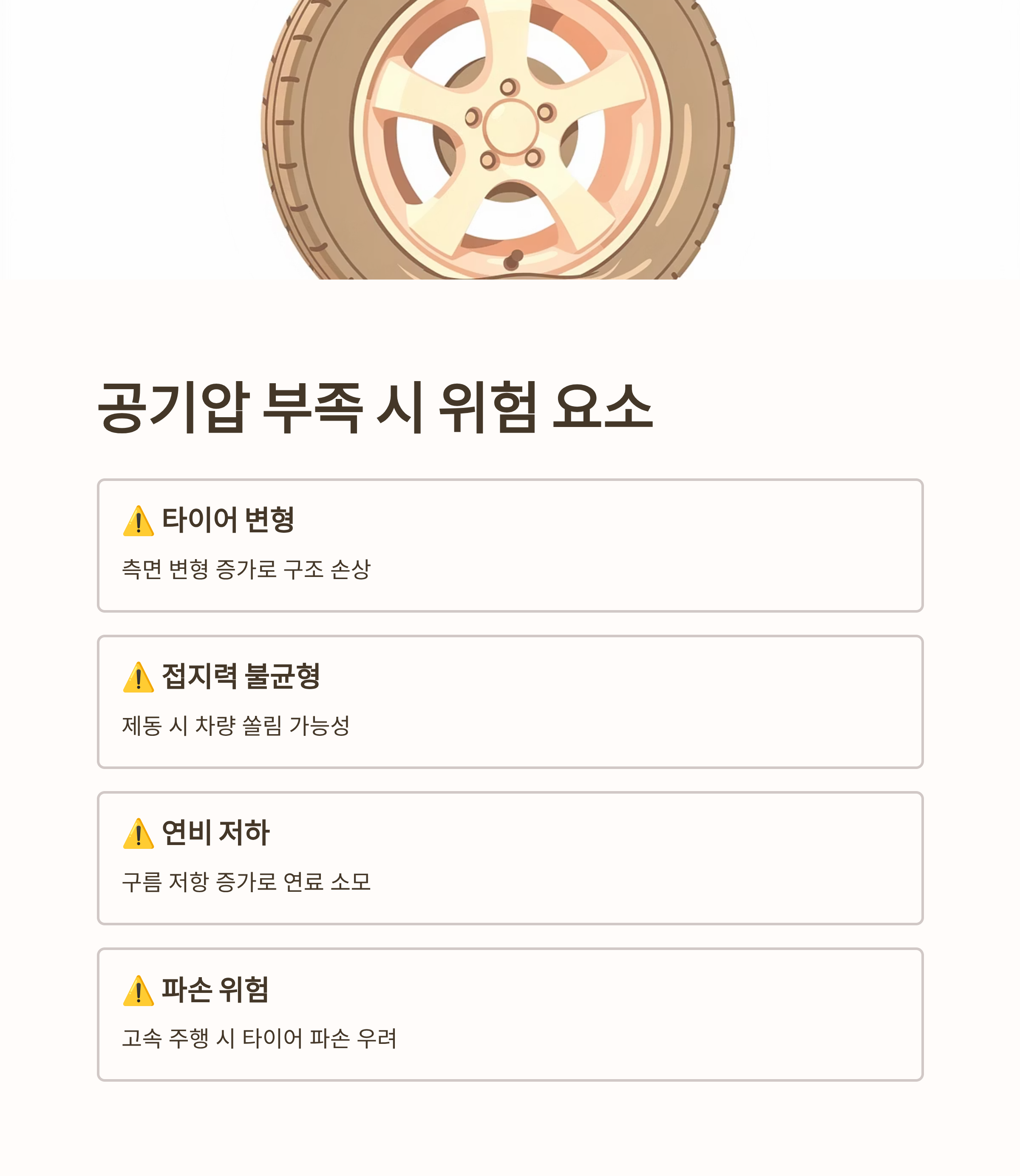 - 공기압이 부족하거나 과할 때 생기는 위험