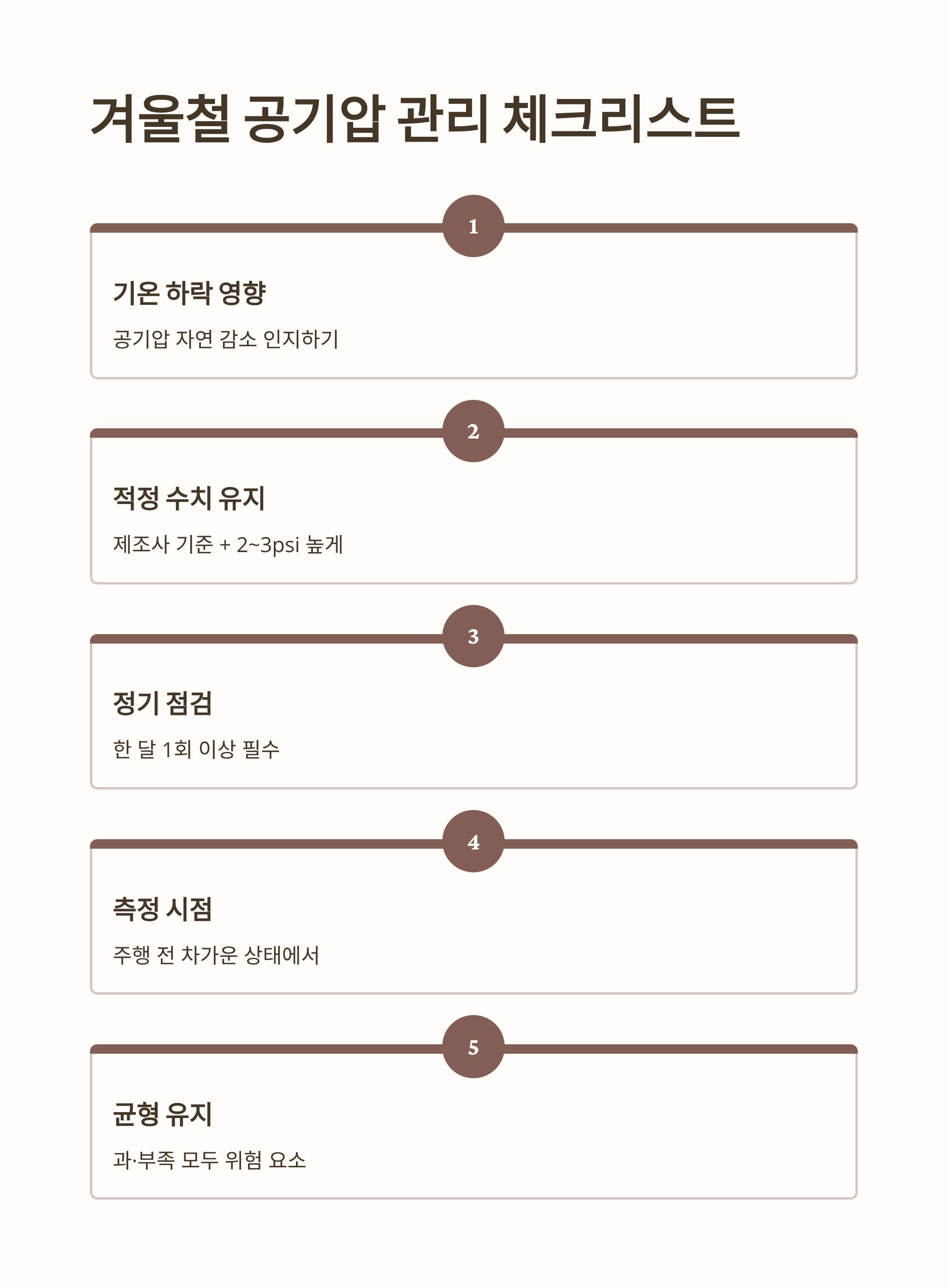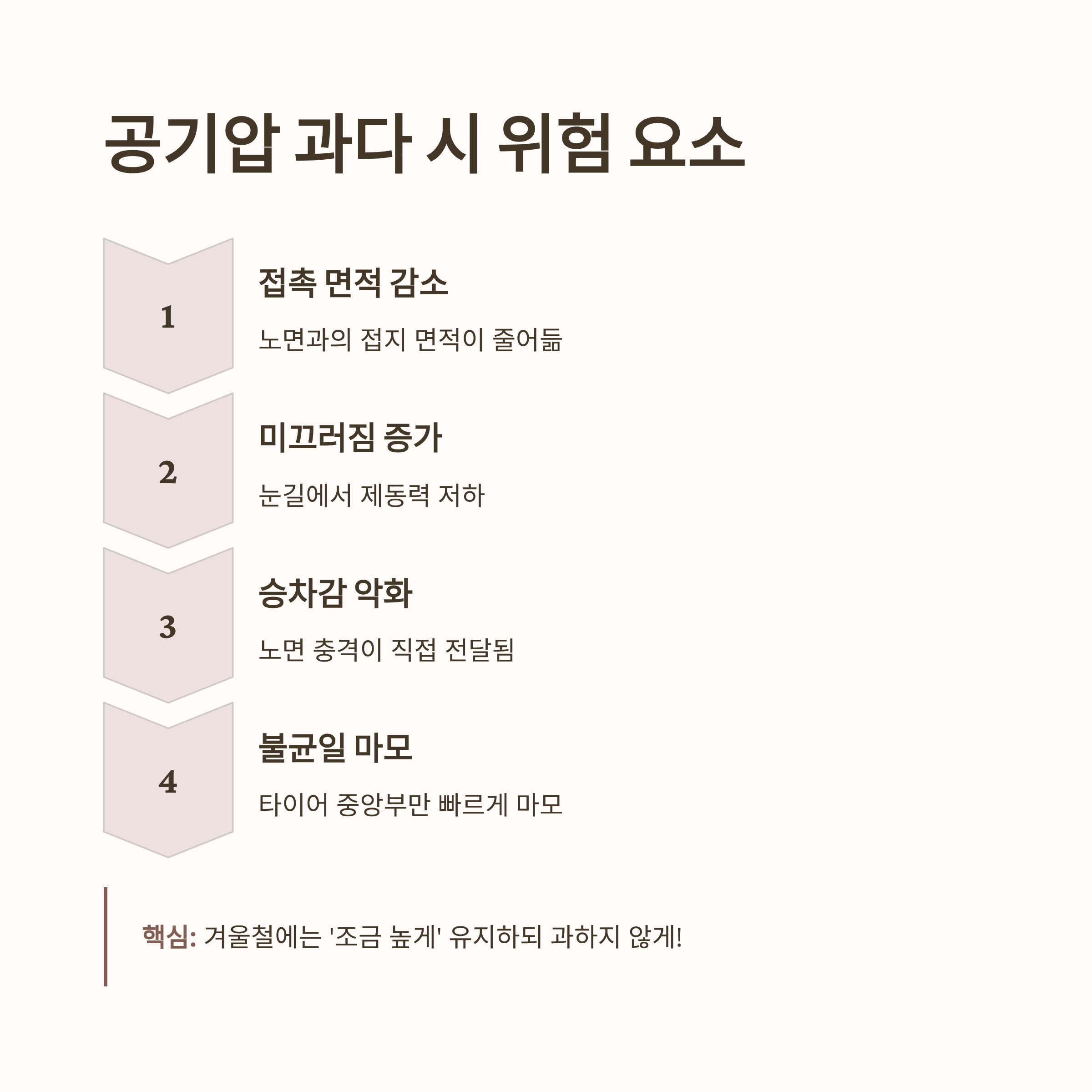 👉 겨울철 타이어 적정 공기압은 ‘조금 높게’ 유지하는 것이 핵심입니다.