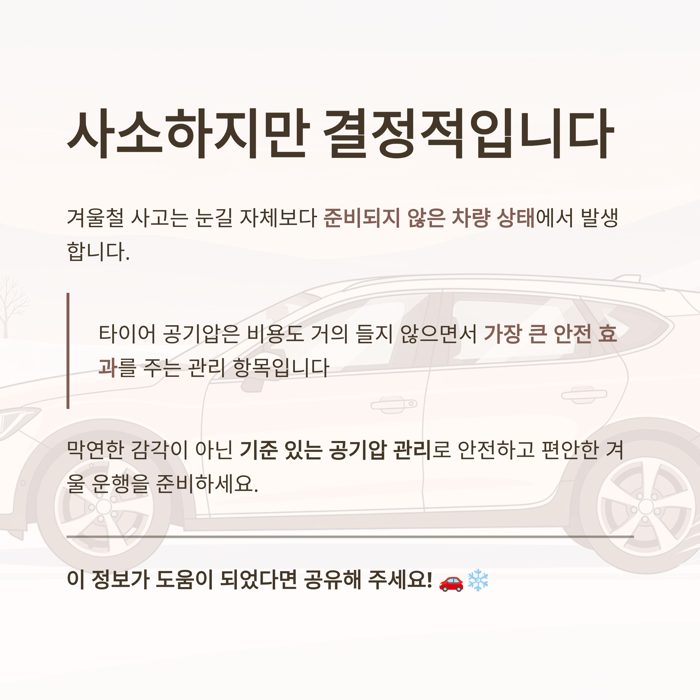눈길 자체보다 준비되지 않은 차량 상태에서 발생합니다.