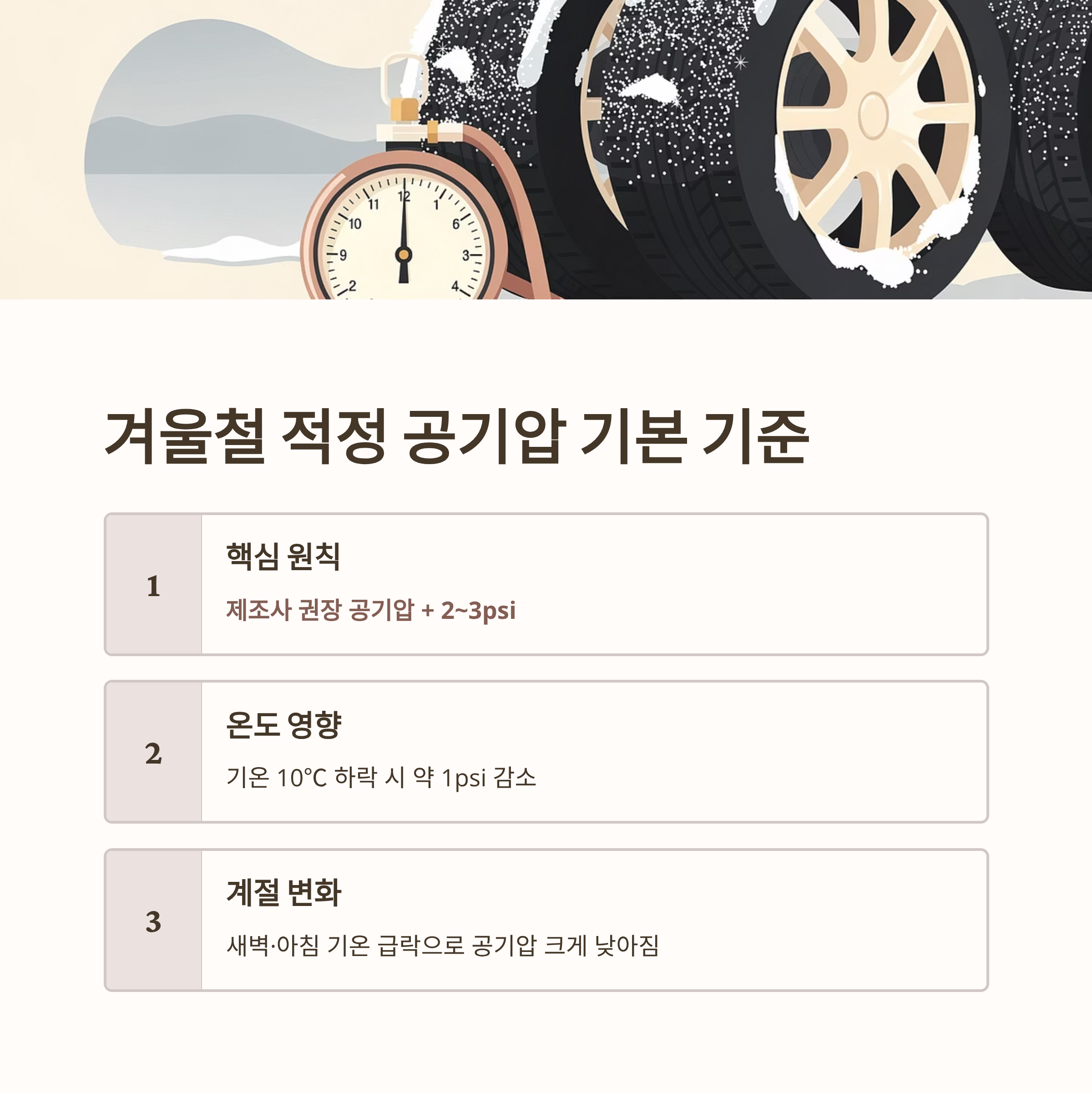 겨울철 타이어 적정 공기압 요약 정리