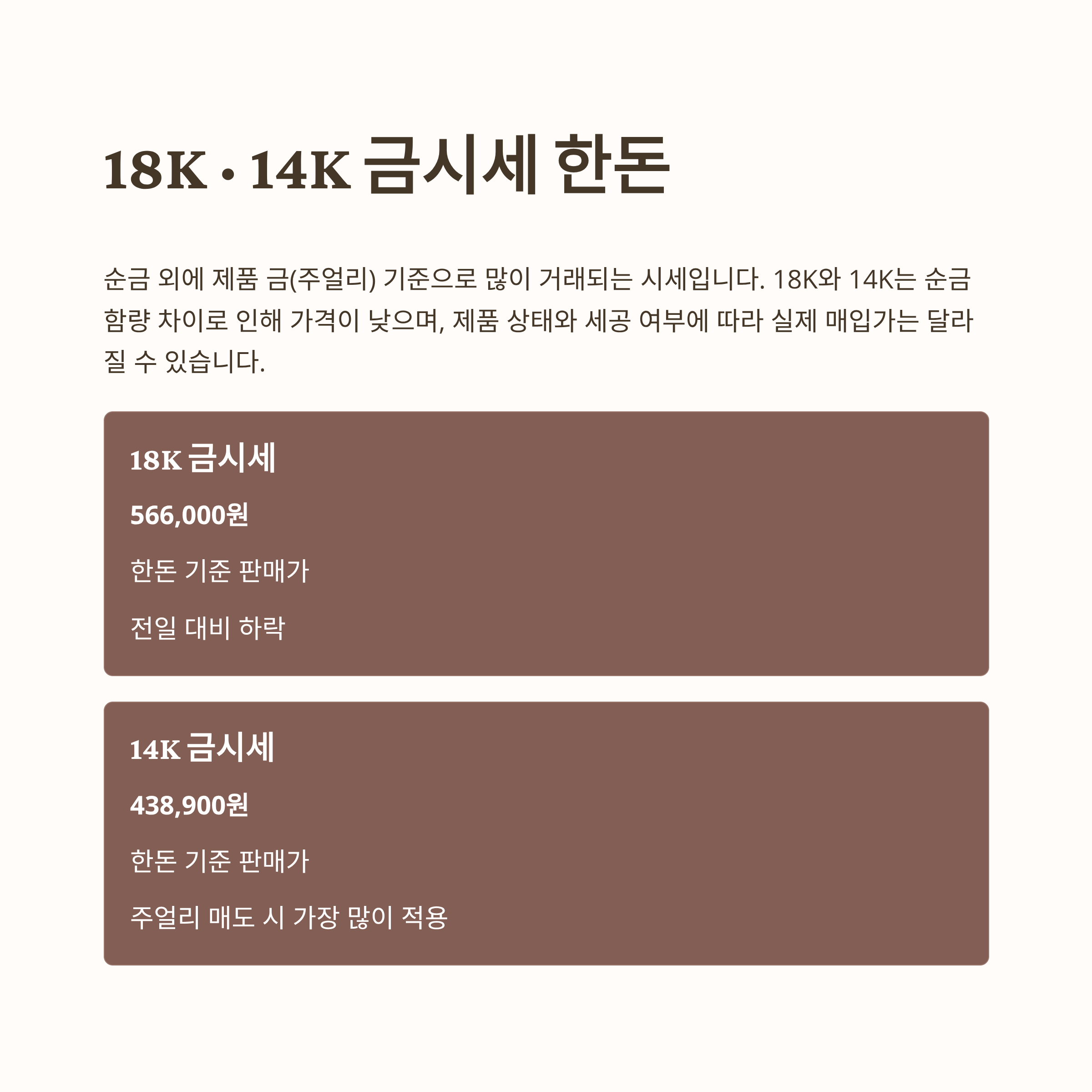 순금 외에 제품 금(주얼리) 기준으로 많이 거래되는 시세도 함께 살펴보겠습니다.