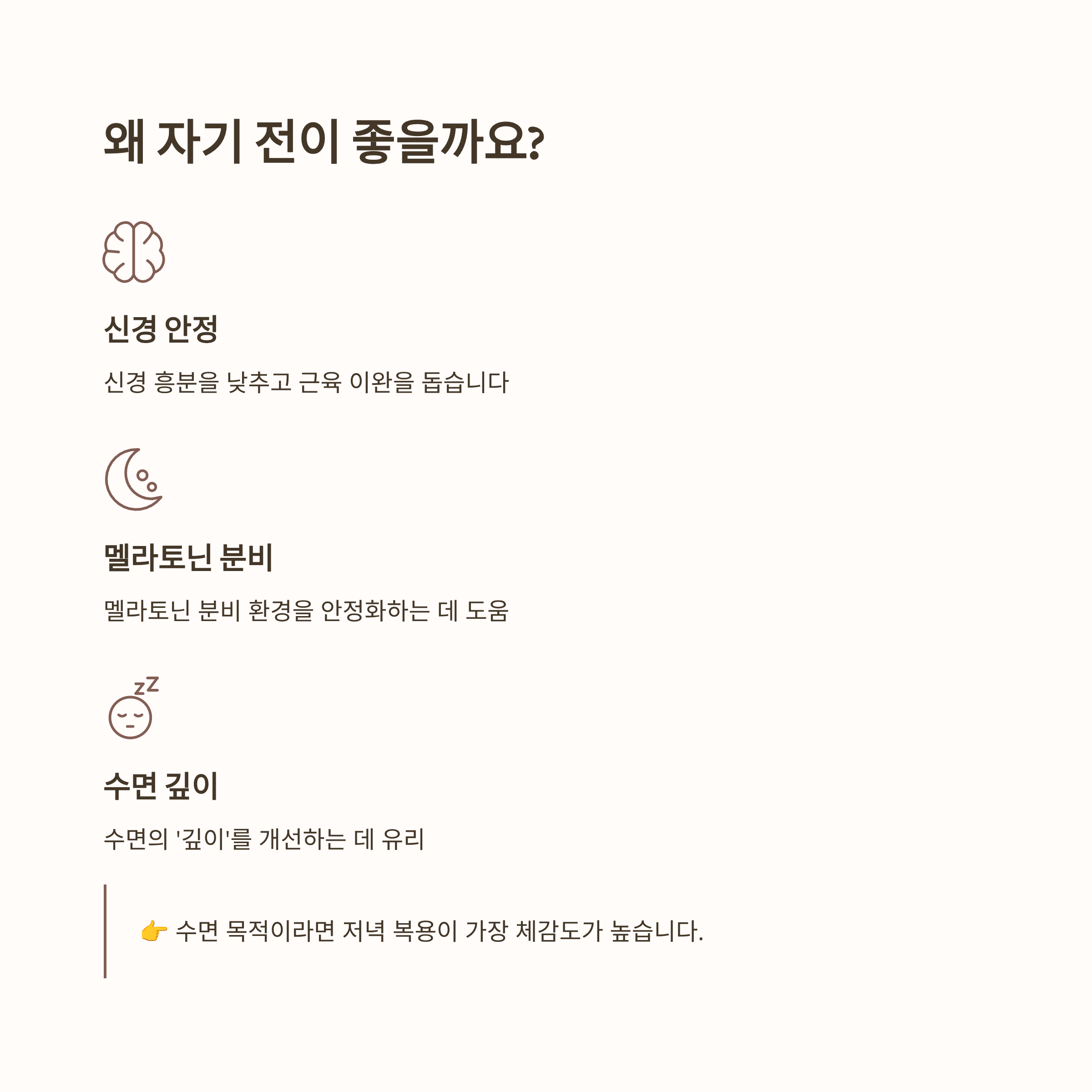 ✔ 수면·스트레스 목적 → 자기 전