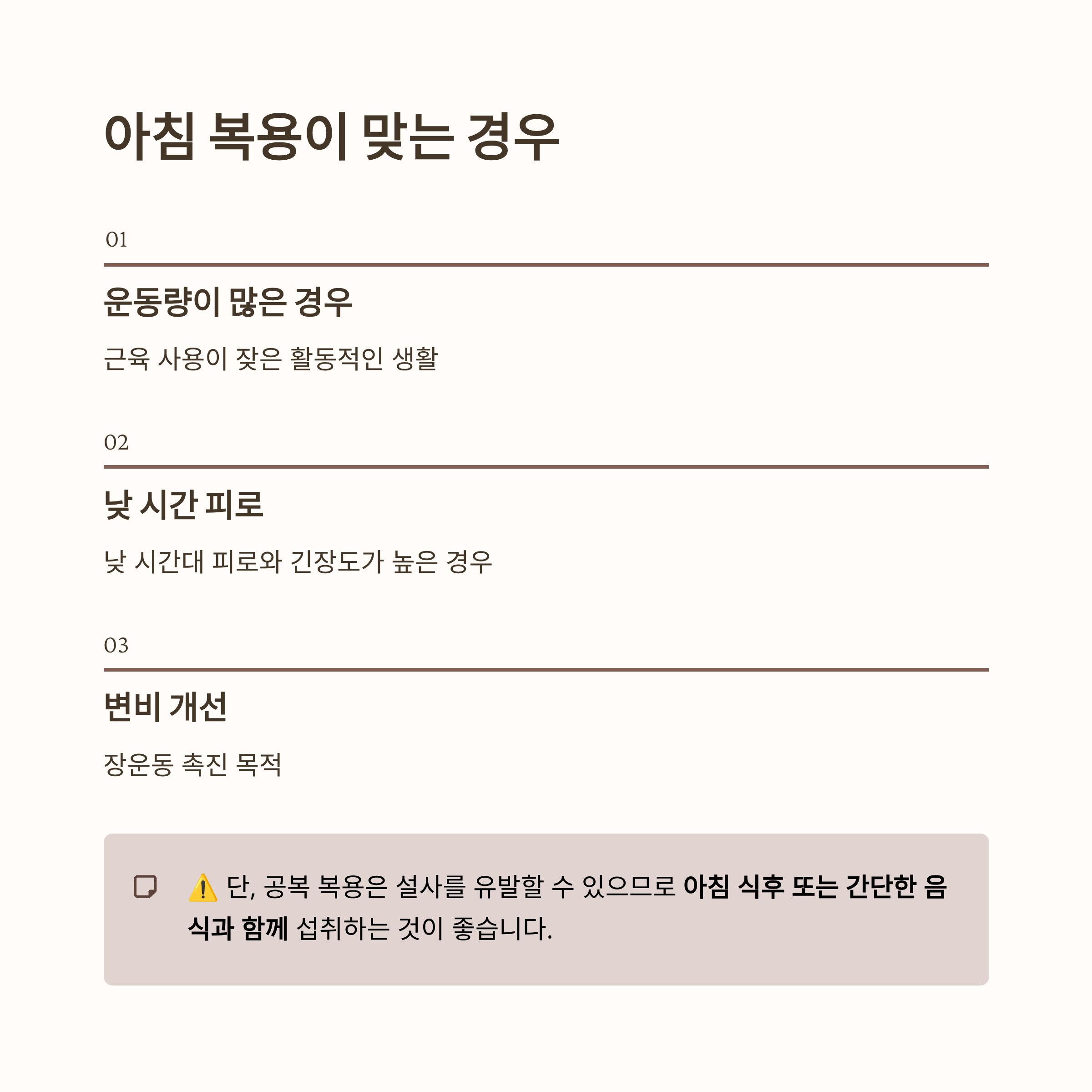 ✔ 활동·운동 목적 → 아침 식후