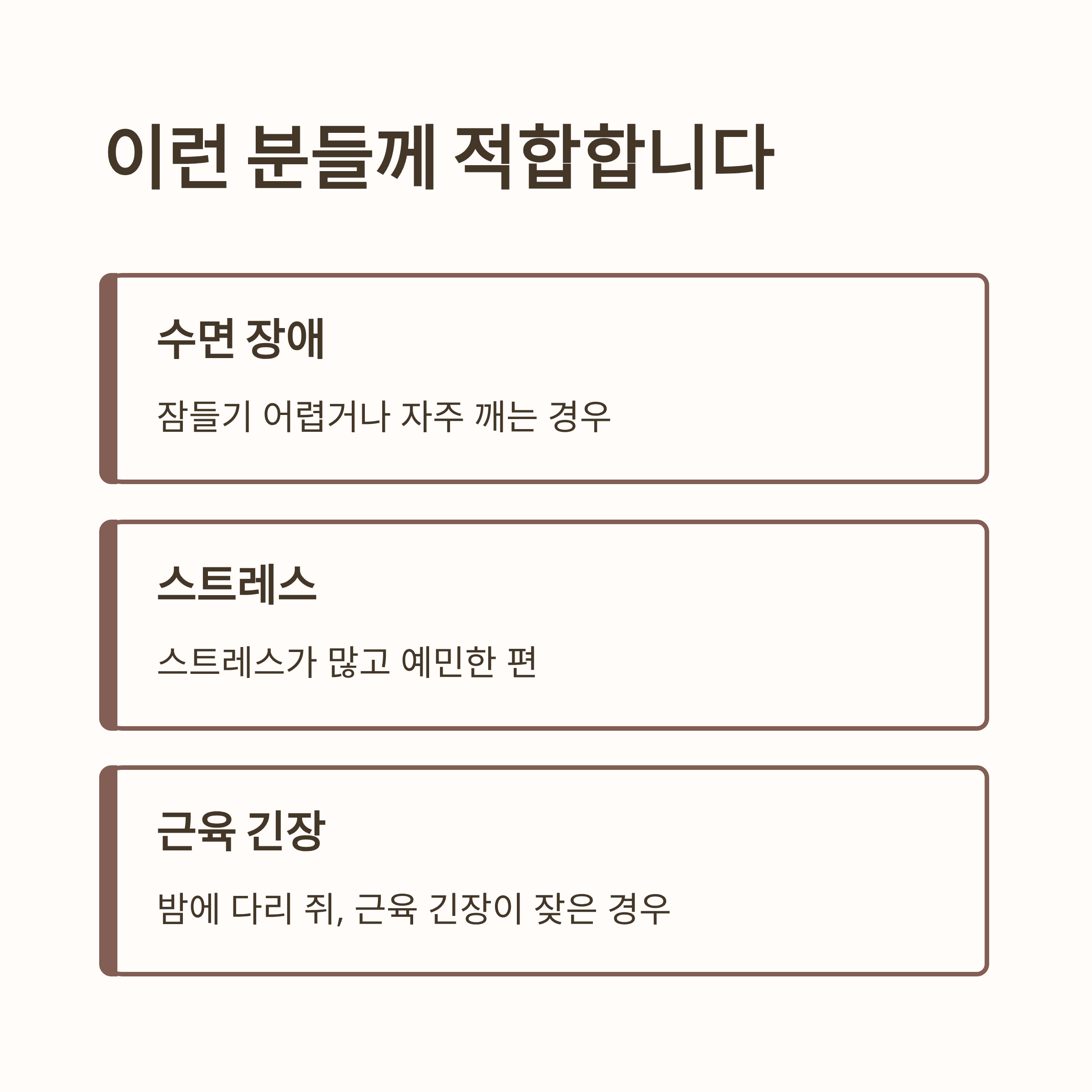 - 잠들기 어렵거나 자주 깨는 경우