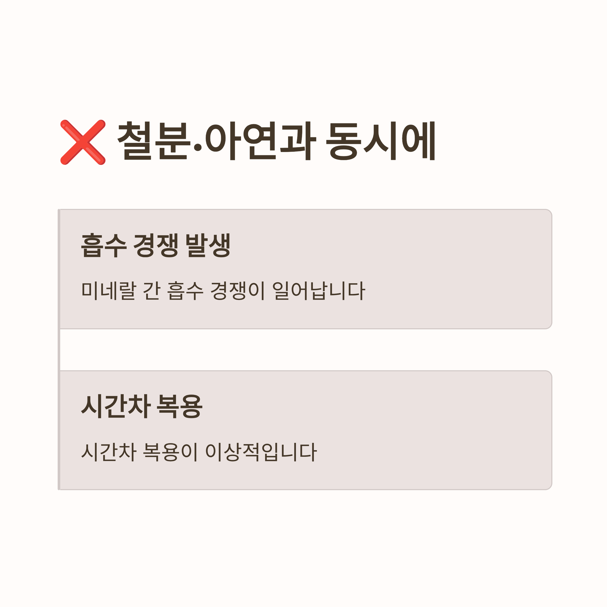 ❌ 철분·아연과 동시에