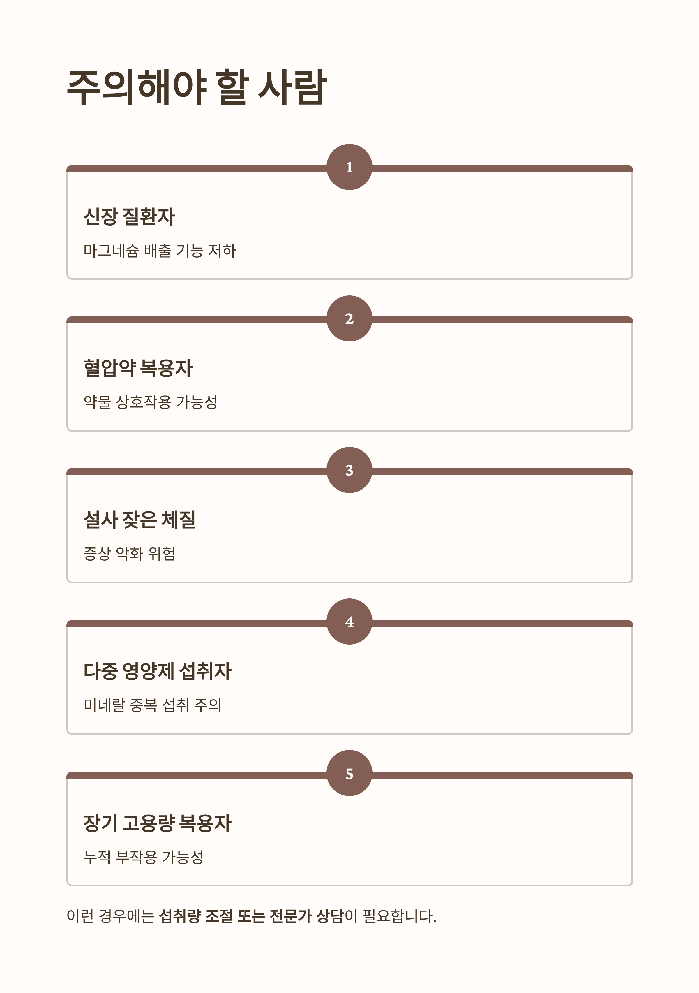 - 고용량 마그네슘을 장기간 복용하는 경우