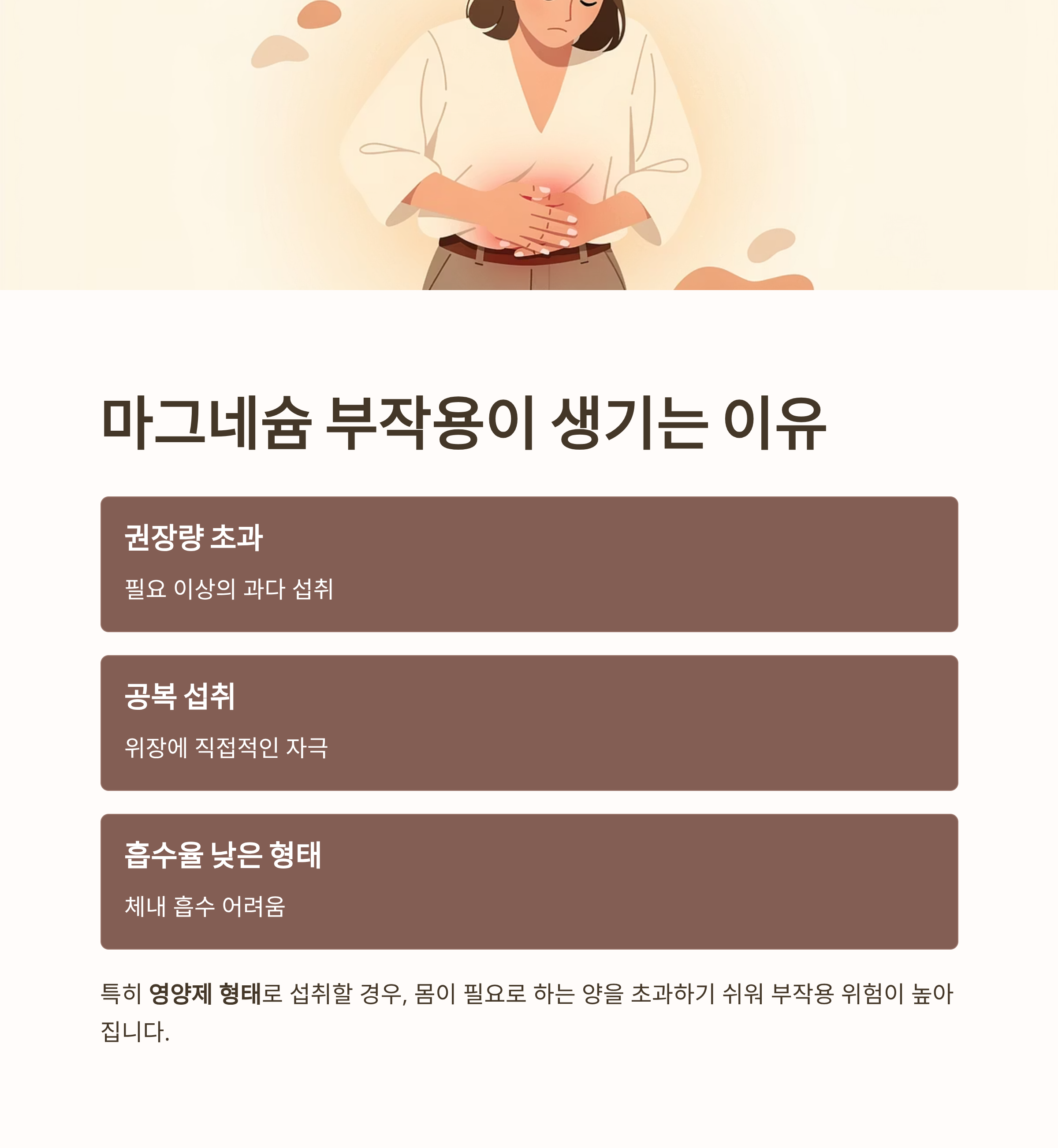 마그네슘 부작용은 대부분 다음과 같은 상황에서 발생합니다.