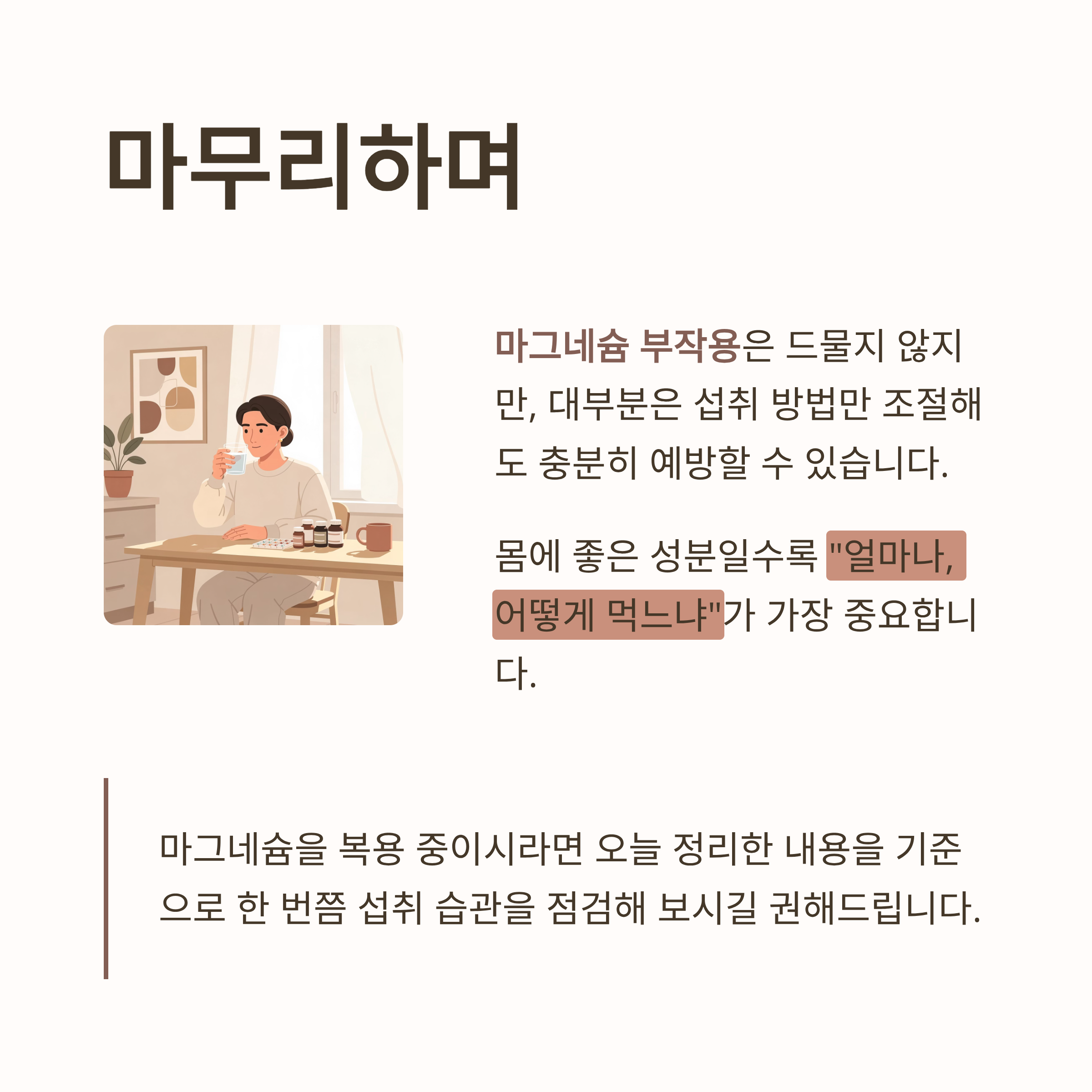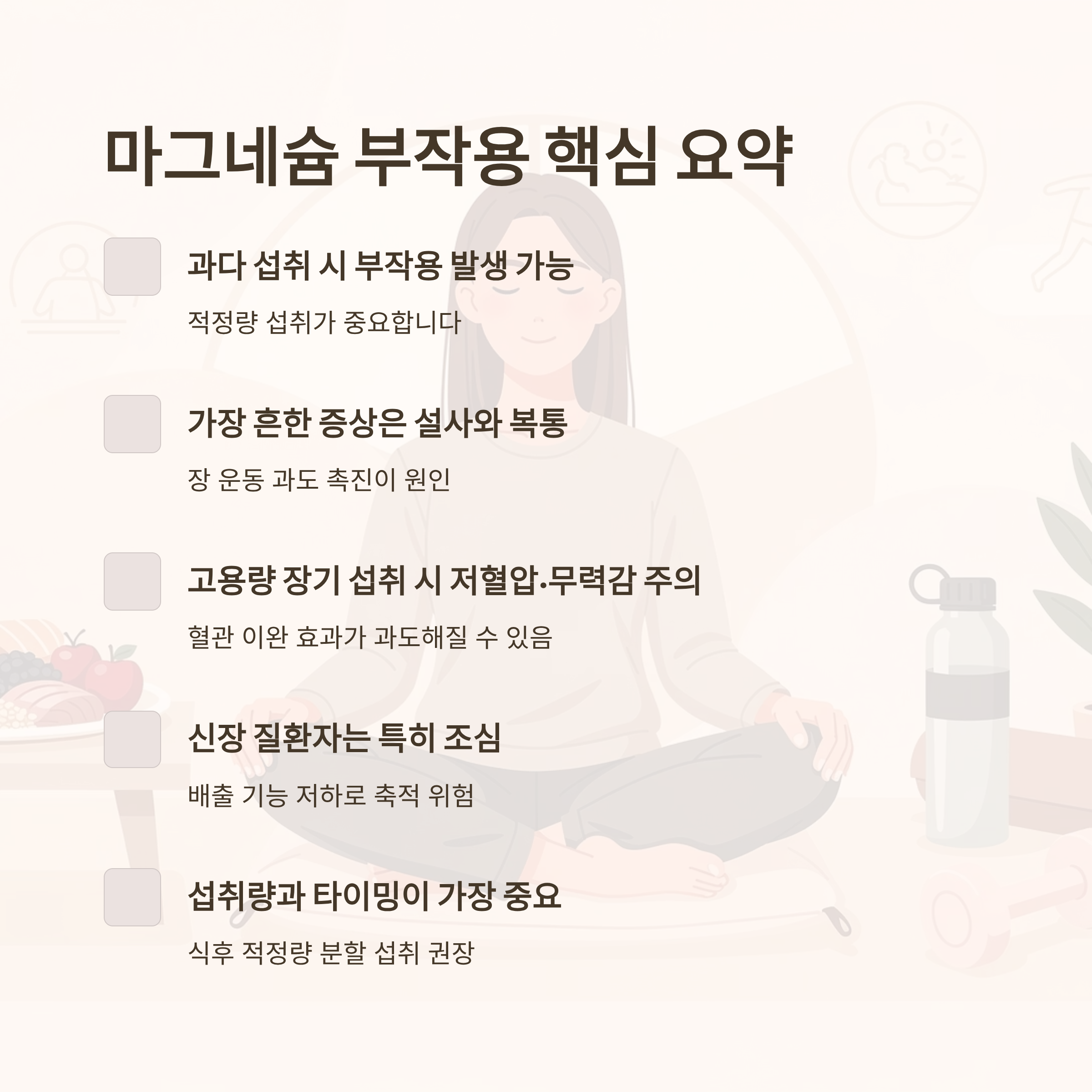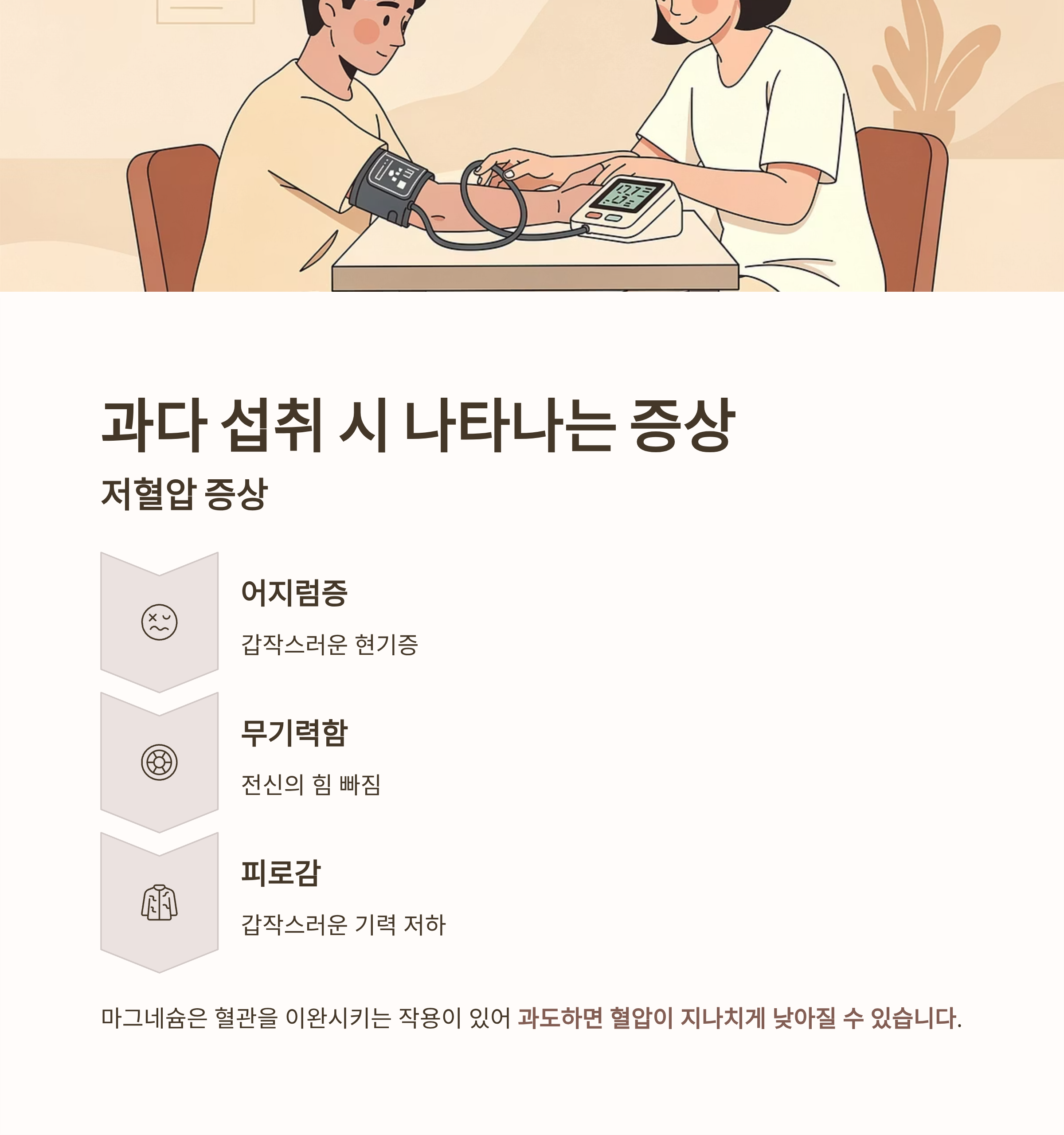 - 마그네슘은 과다 섭취 시 부작용 발생 가능