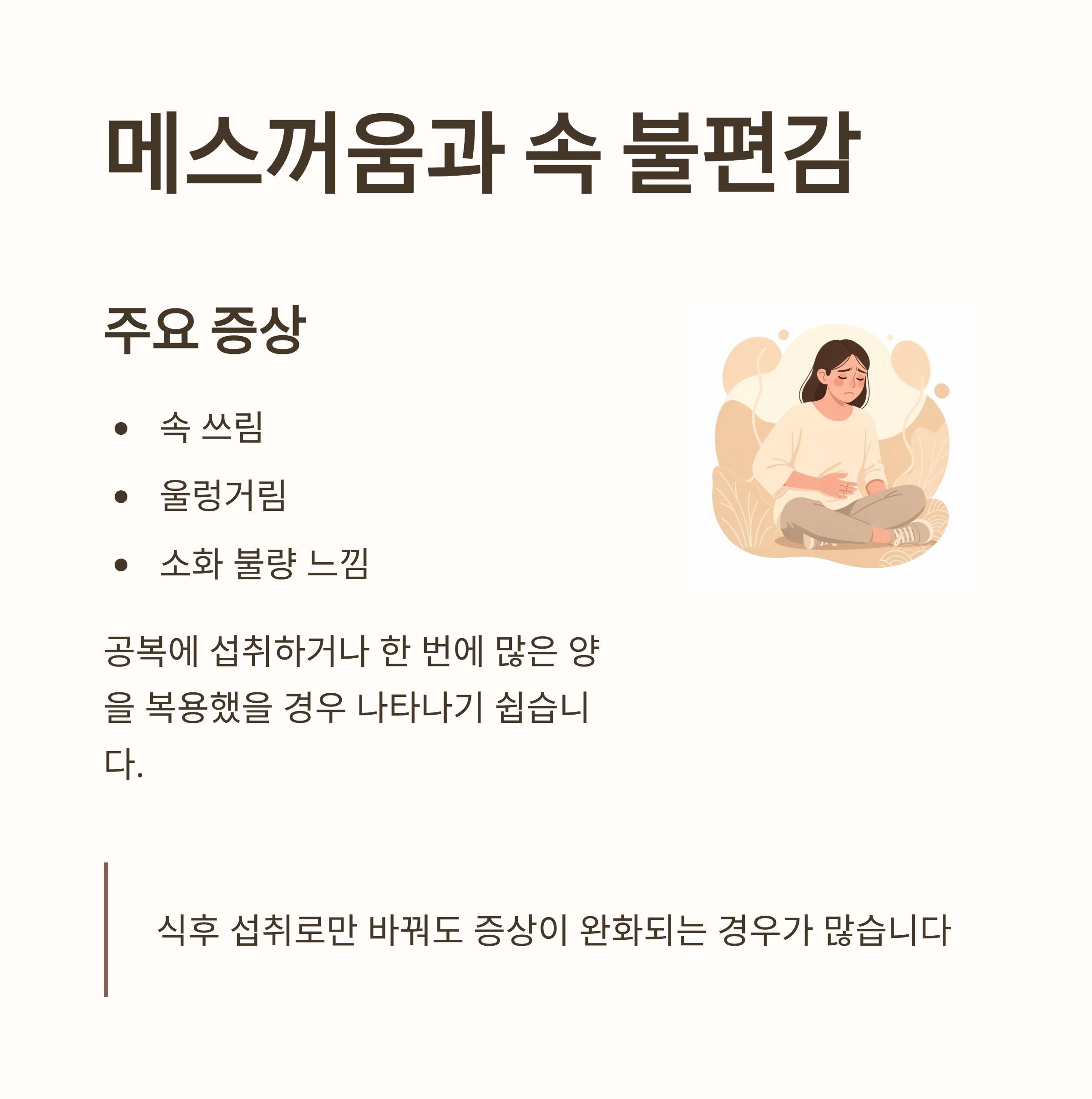 이 경우 식후 섭취로만 바꿔도 증상이 완화되는 경우가 많습니다.