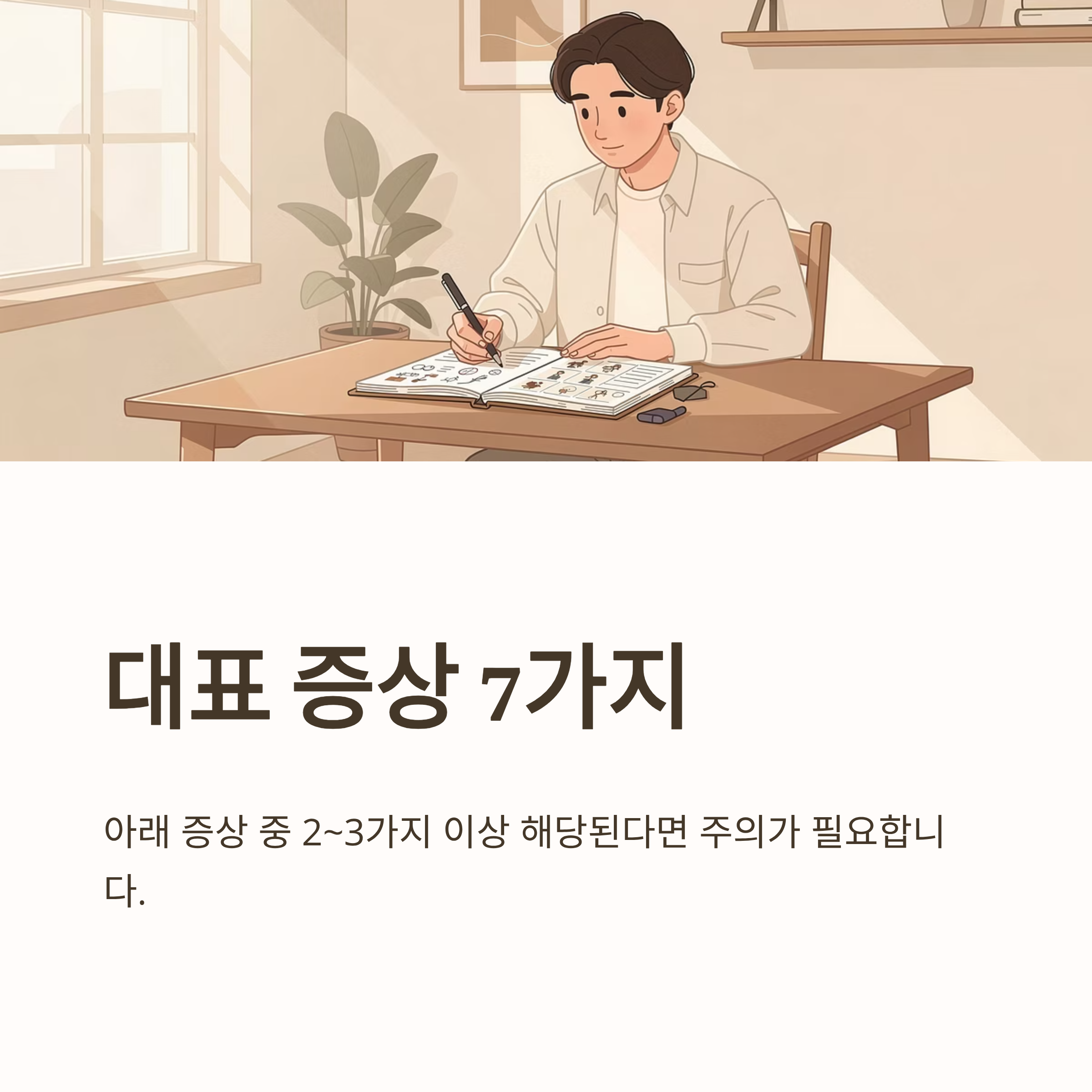 아래 증상 중 2~3가지 이상 해당된다면 주의가 필요합니다.