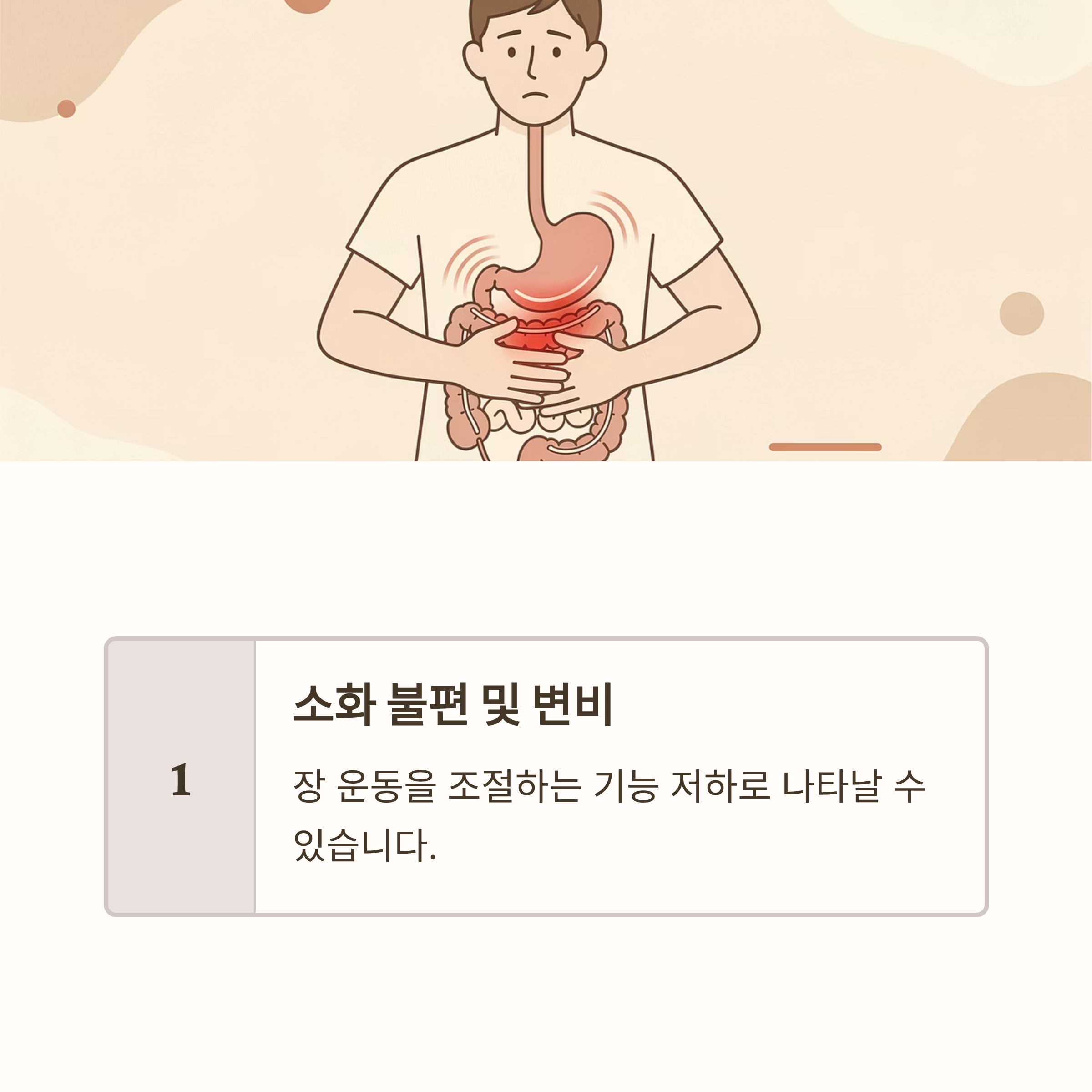 장 운동을 조절하는 기능 저하로 나타날 수 있습니다.