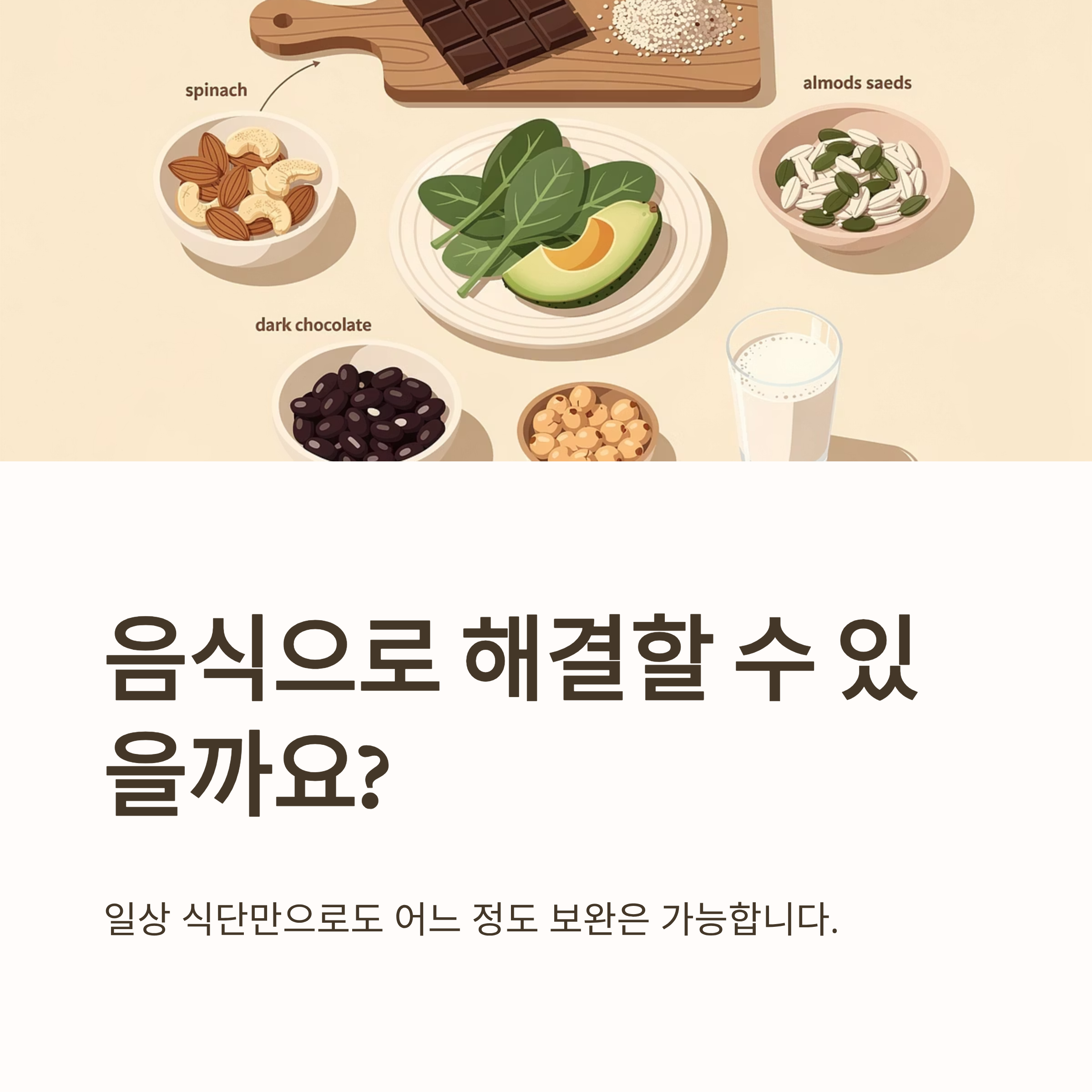 다만 이미 결핍 증상이 나타난 경우라면, 음식만으로 회복이 더딜 수 있습니다.