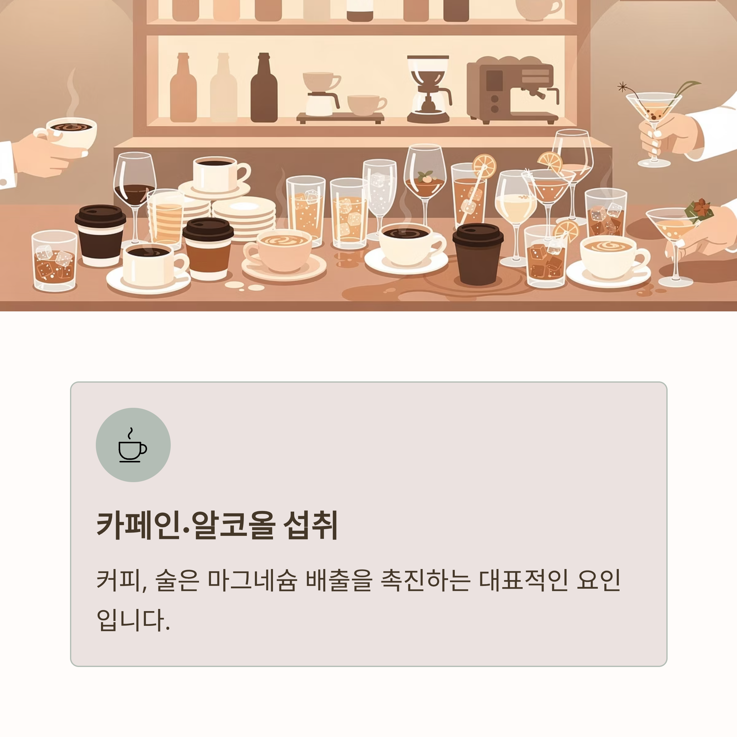 커피, 술은 마그네슘 배출을 촉진하는 대표적인 요인입니다.