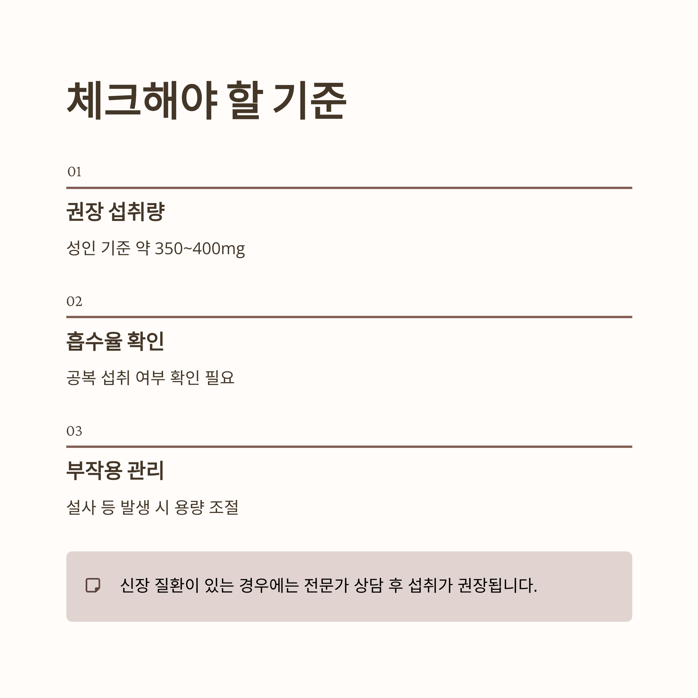 특히 신장 질환이 있는 경우에는 전문가 상담 후 섭취가 권장됩니다.