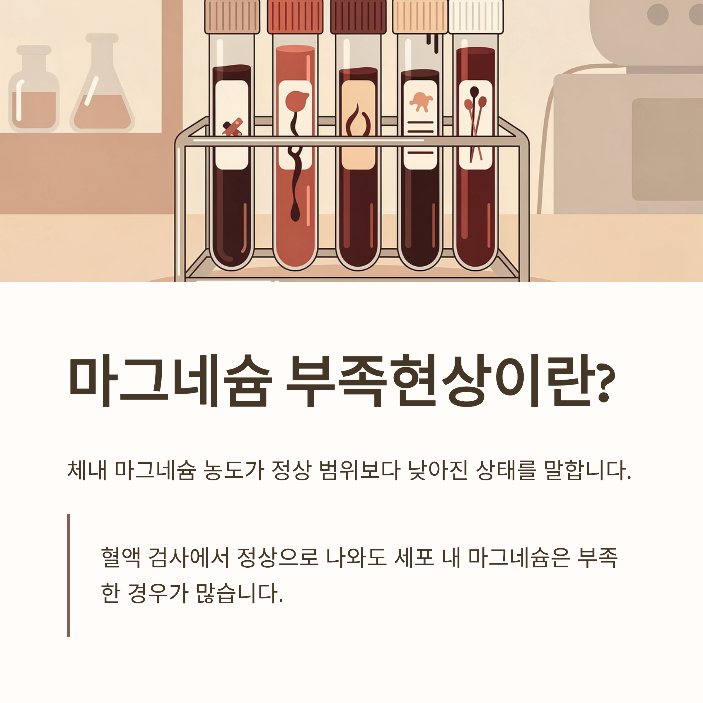문제는 혈액 검사에서 정상으로 나와도 세포 내 마그네슘은 부족한 경우가 많다는 점입니다.
