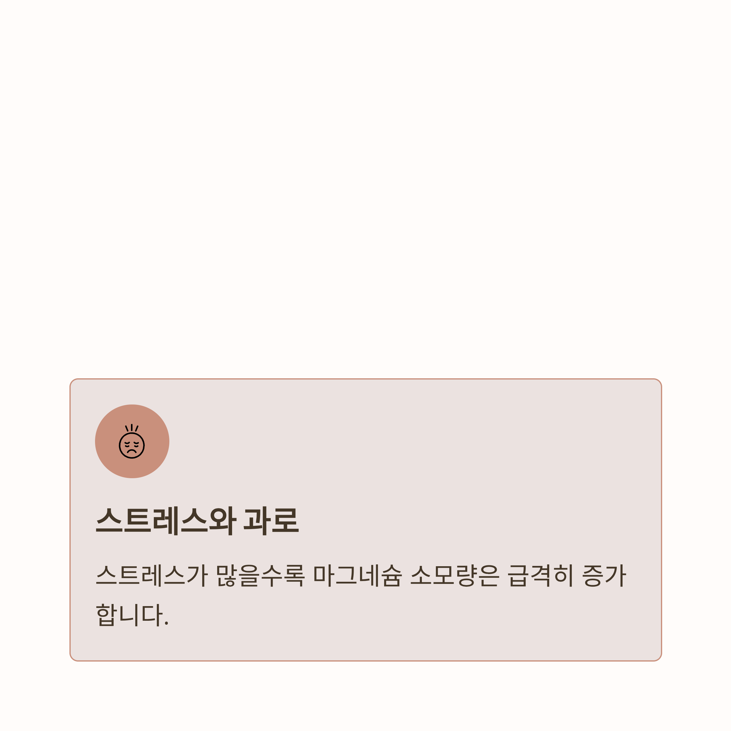 스트레스가 많을수록 마그네슘 소모량은 급격히 증가합니다.