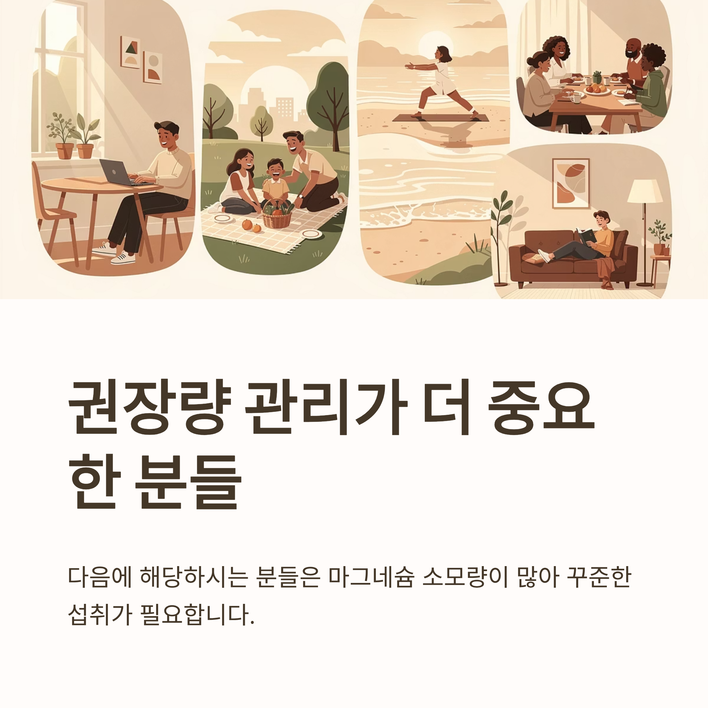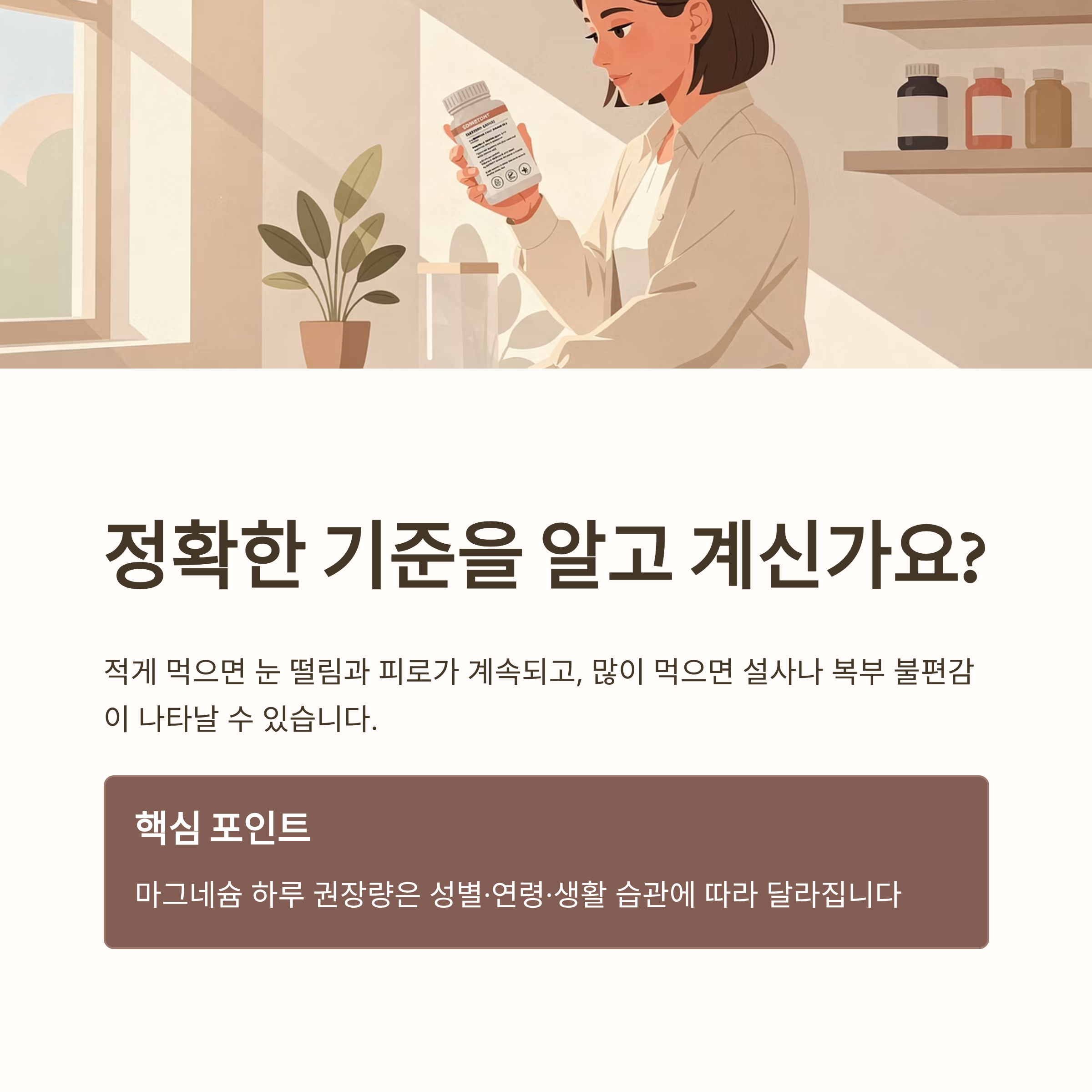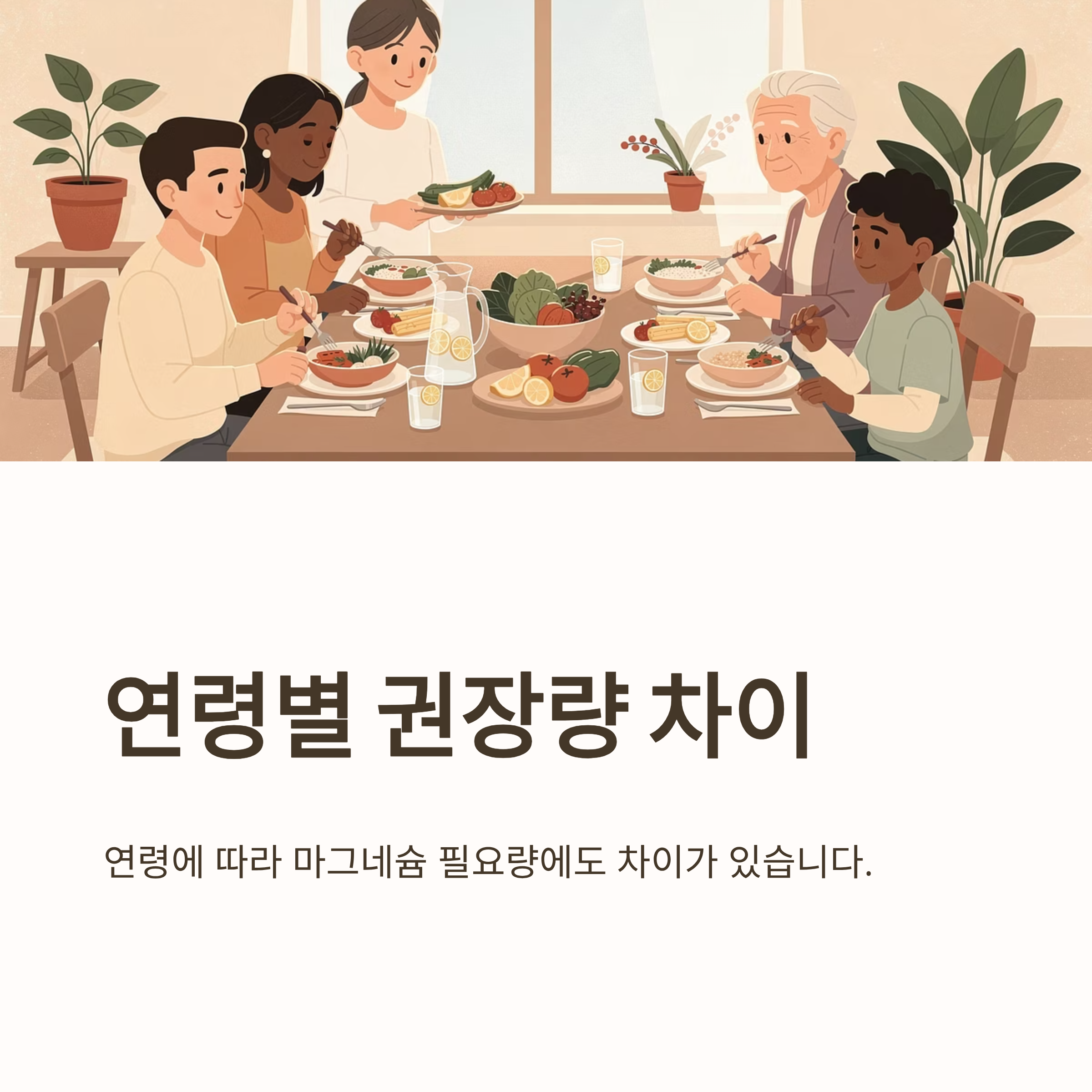 👉 마그네슘 하루 권장량은 성별·연령·생활 습관에 따라 달라집니다.