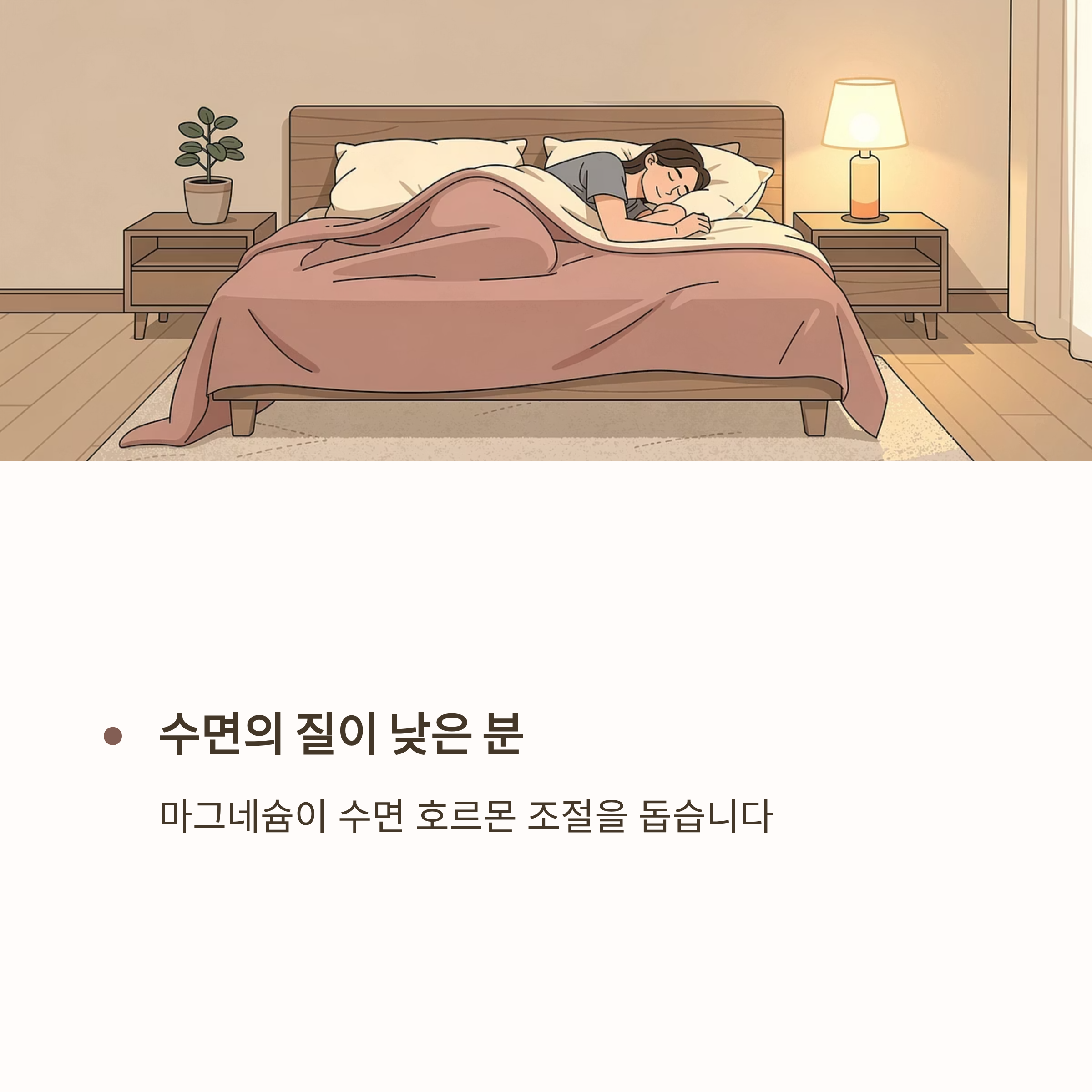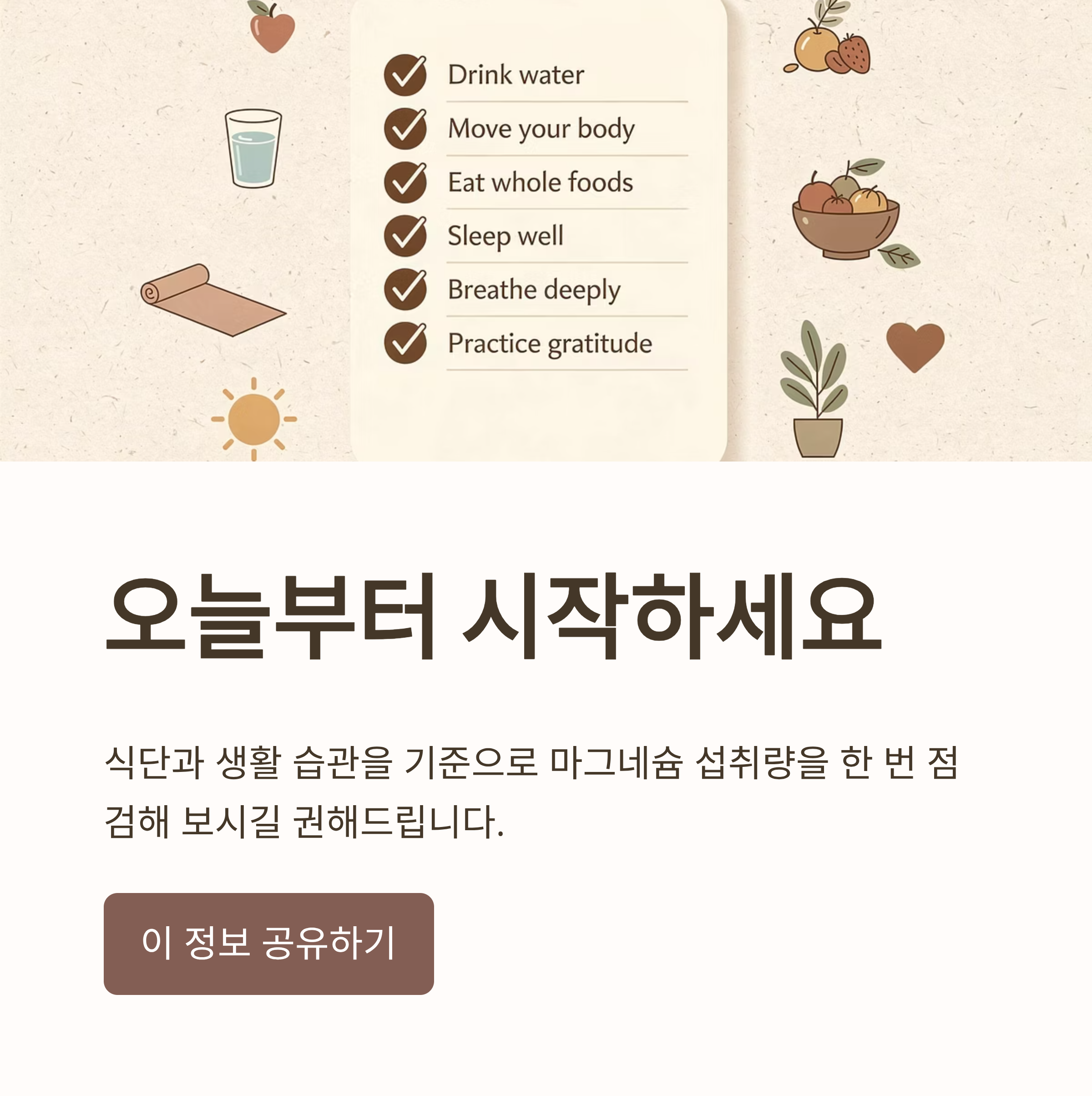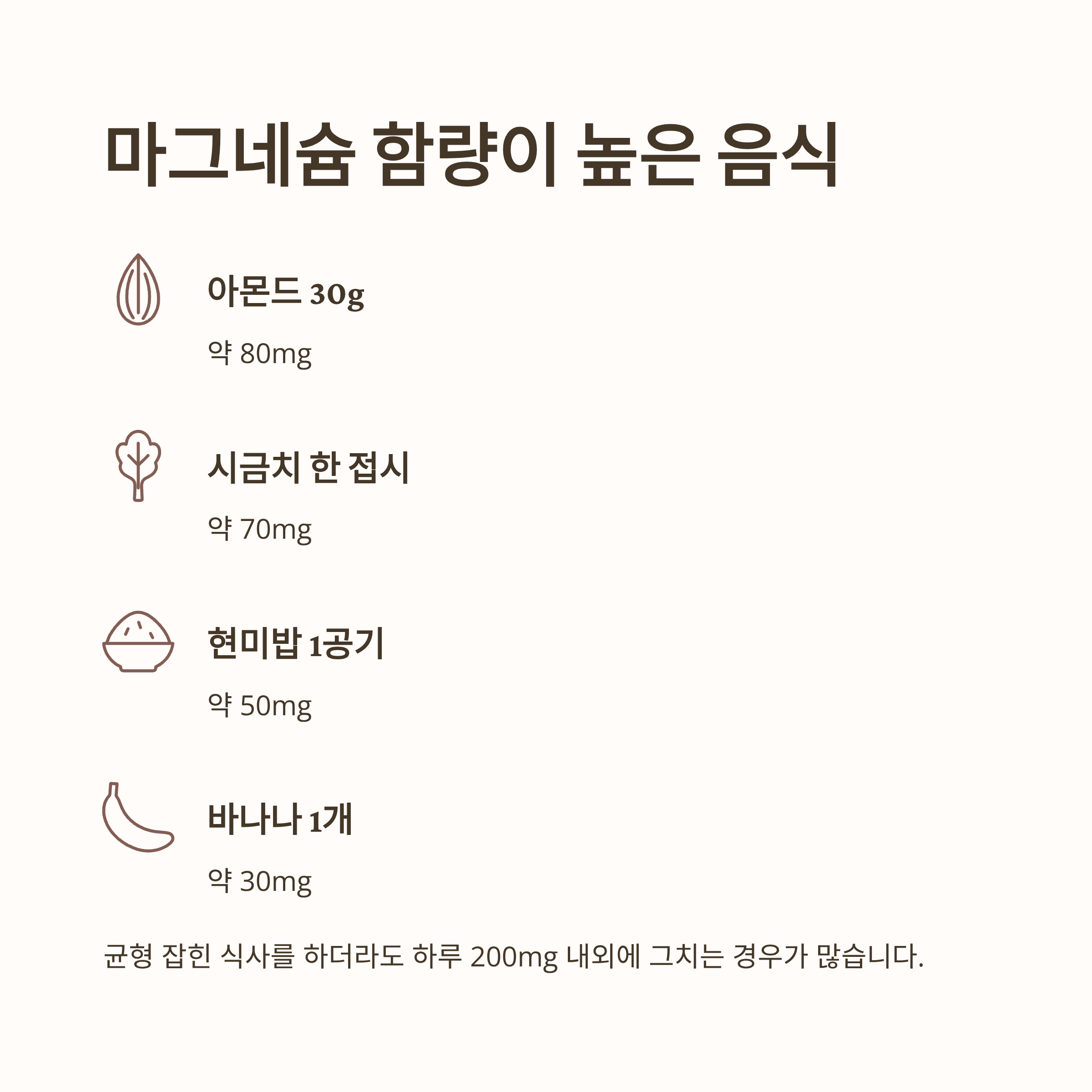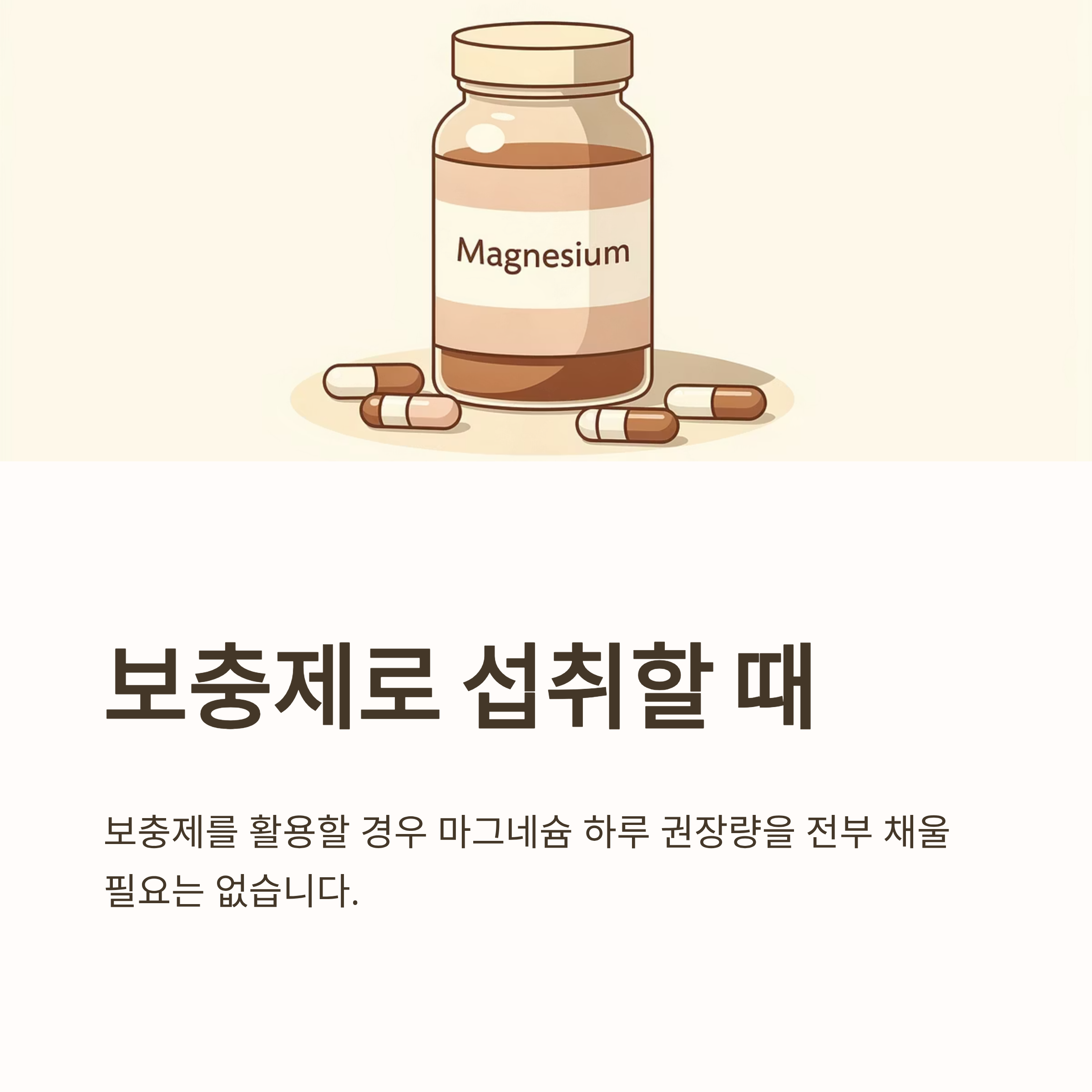 👉 마그네슘 하루 권장량은 성별·연령·생활 습관에 따라 달라집니다.