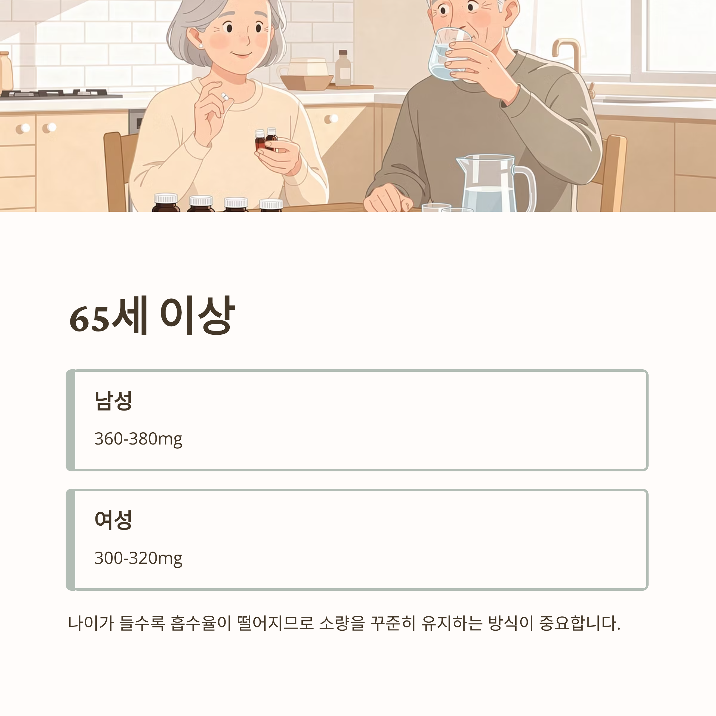 고령층일수록 한 번에 많이 섭취하기보다 소량을 꾸준히 유지하는 방식이 중요합니다.