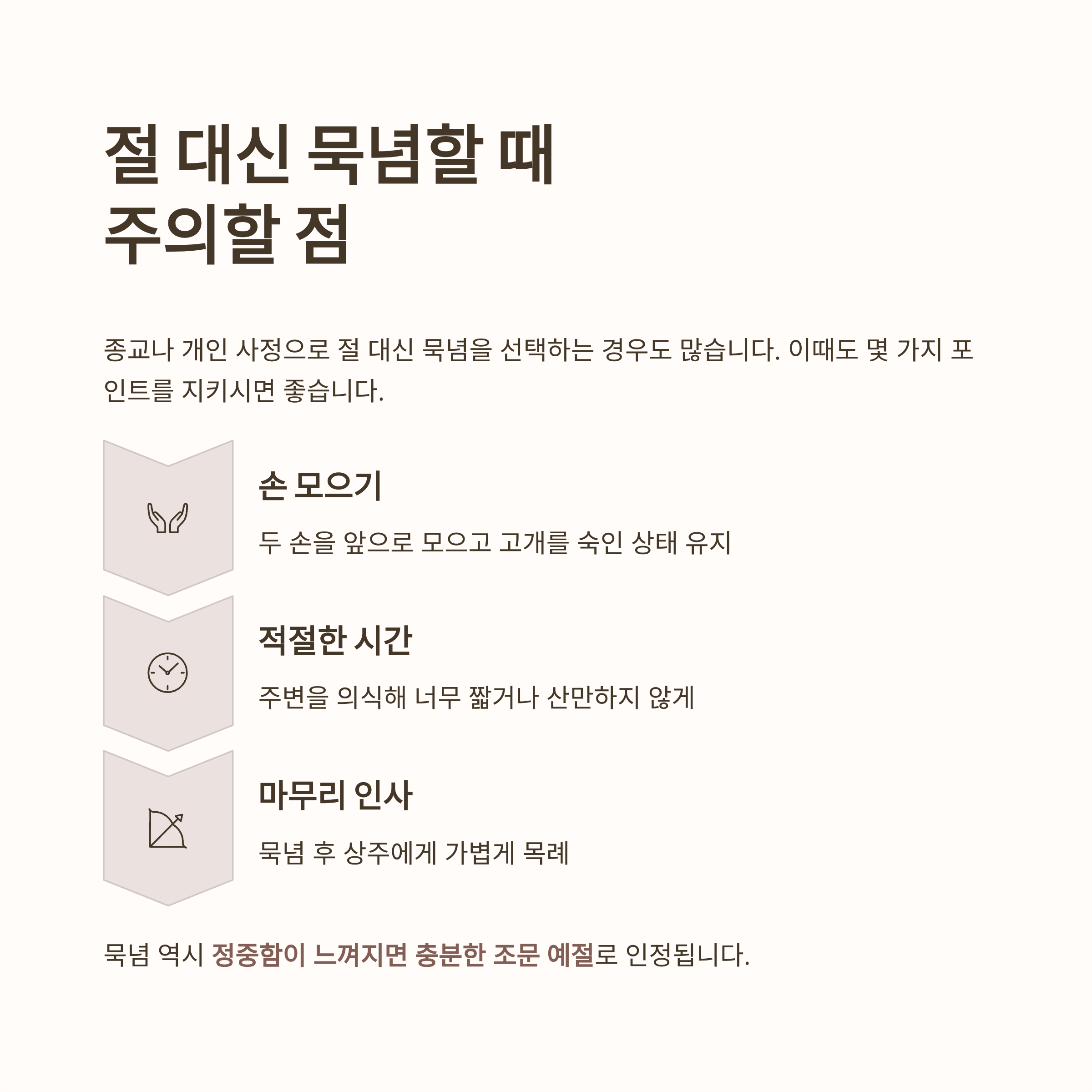 종교나 개인 사정으로 절 대신 묵념을 선택하는 경우도 많습니다.