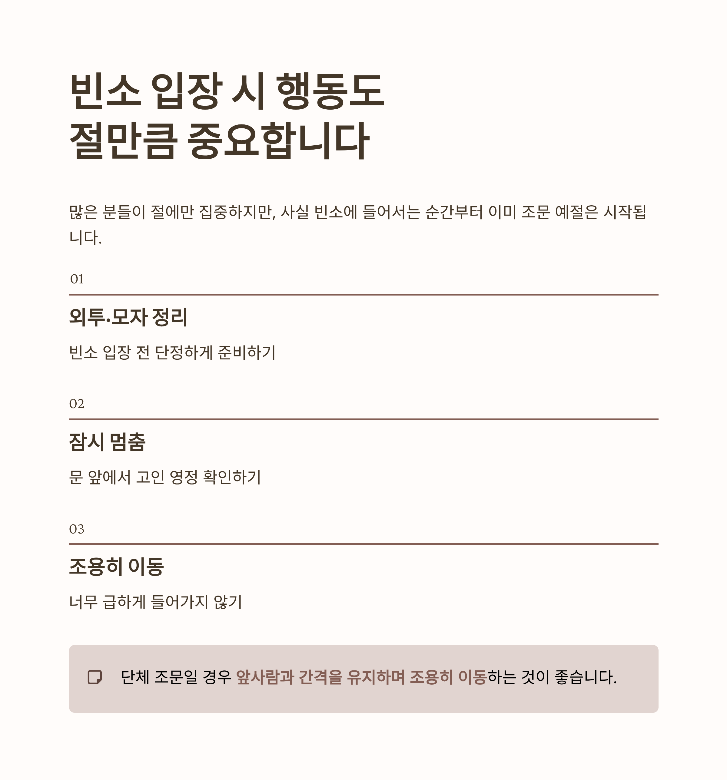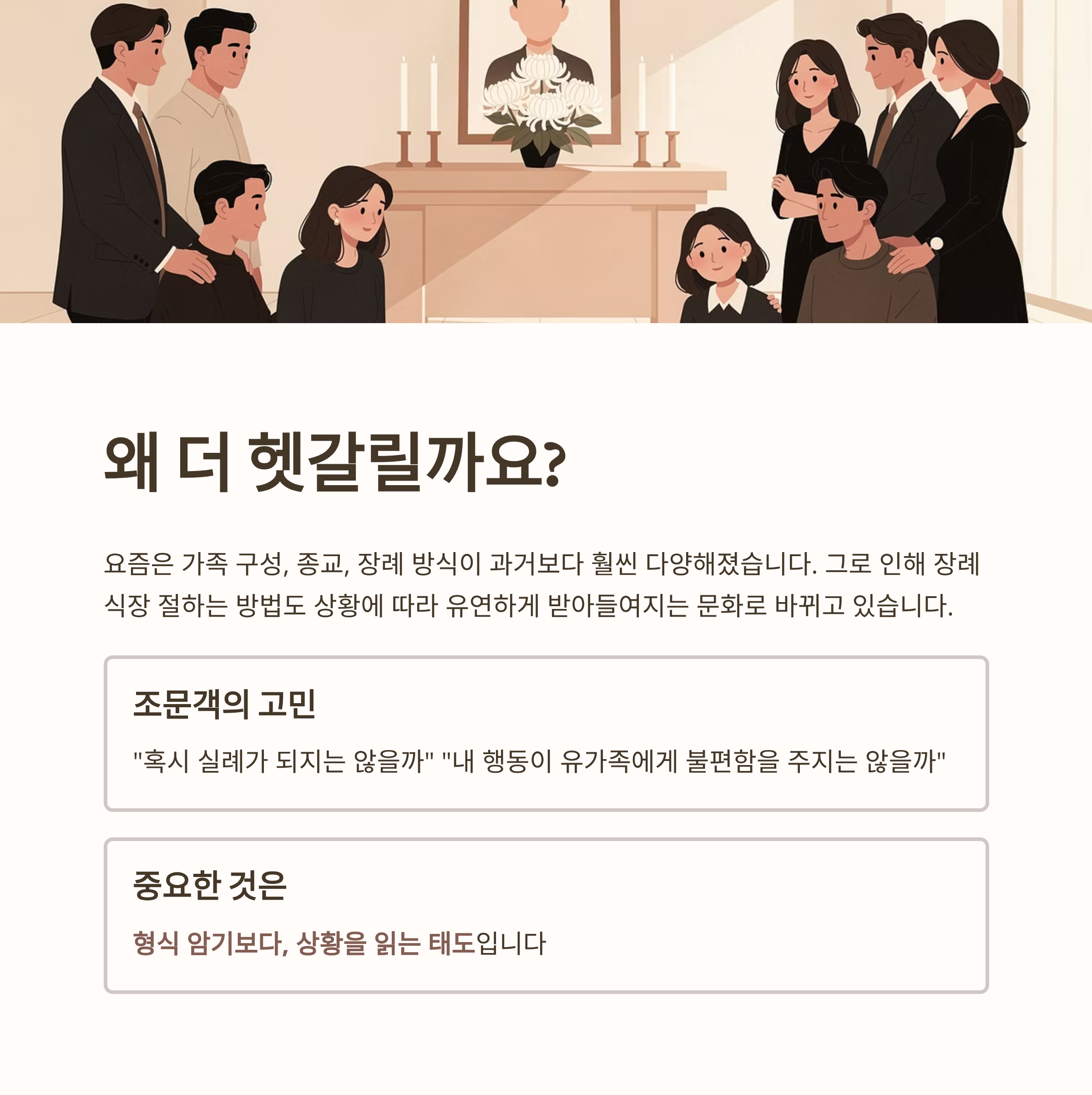 많은 분들이 절에만 집중하지만, 사실 빈소에 들어서는 순간부터