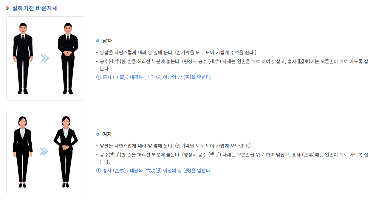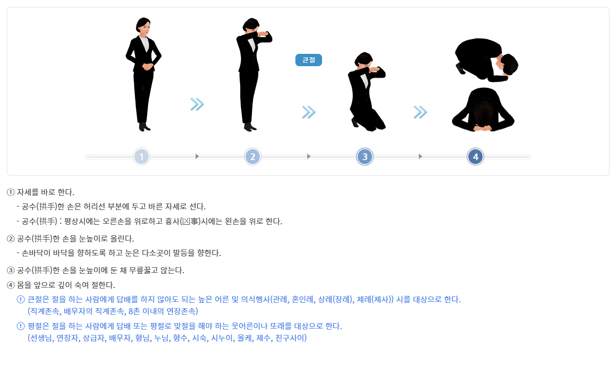 이런 기본적인 태도만 지켜도 절을 하기 전부터 예의를 갖춘 인상을 줄 수 있습니다.